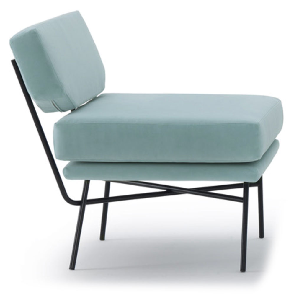 Den Sessel Elettra entwarf die Architektengemeinschaft Studio B.B.P.R. um 1953/54 für Arflex, der Klassiker überzeugt durch das Design und die damals von Arflex entwickelte neue Technologie für die Verwendung von Schaumstoff und elastischen Bändern im Möbelbereich. Zusätzlich lässt sich der Textilbezug des lose aufliegenden Sitzkissens schnell und einfach austauschen.
