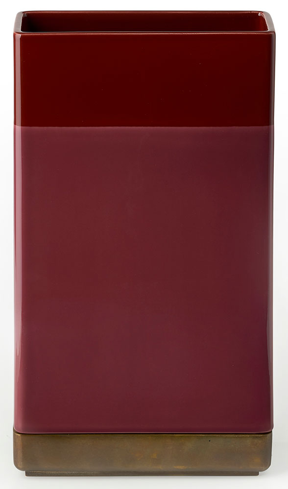 Die 38 cm hohe Vase DIM2 von Bitossi zählt zu der Equilibri-Kollektion, die von dem Mailänder Innenarchitekten Dimorestudio um 2016 entworfen wurde. Dabei kombiniert der Entwurf Messing und Keramik.