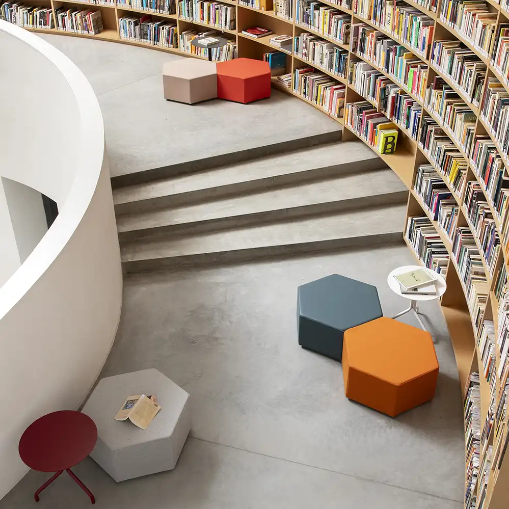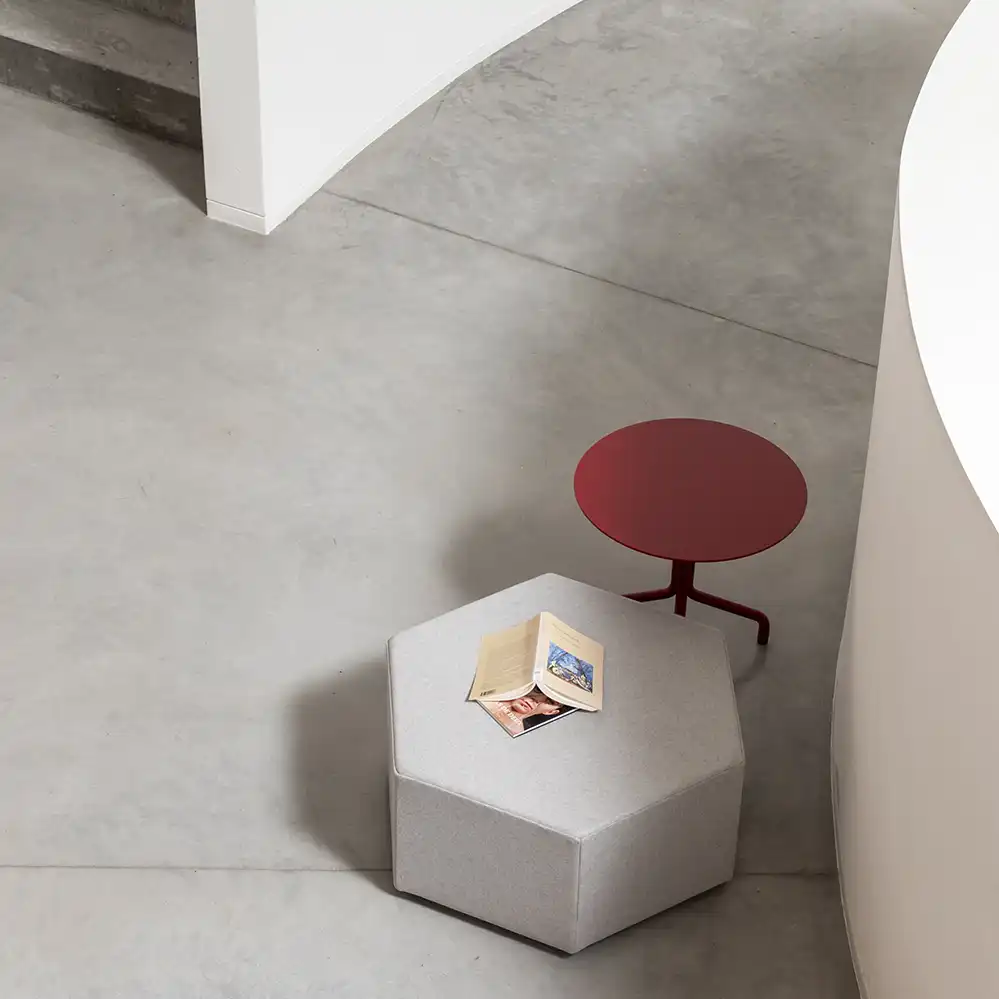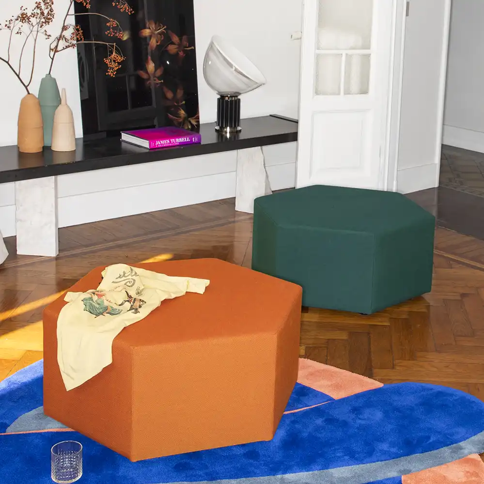 Die sechseckigen Schaumstoffblöcke ESA entwarf der japanische Designer Kazuhide Takahama in den 1960er Jahren, hierbei entsprach das Konzept dem damaligen Wunsch nach neuartigen, mobilen Wohnlandschaften. Der Hocker ESA von B-Line kann beliebig aneinandergestellt werden (durch ein unsichtbares Befestigungssystem) und passt sich so den Bedürfnissen des Besitzers an.