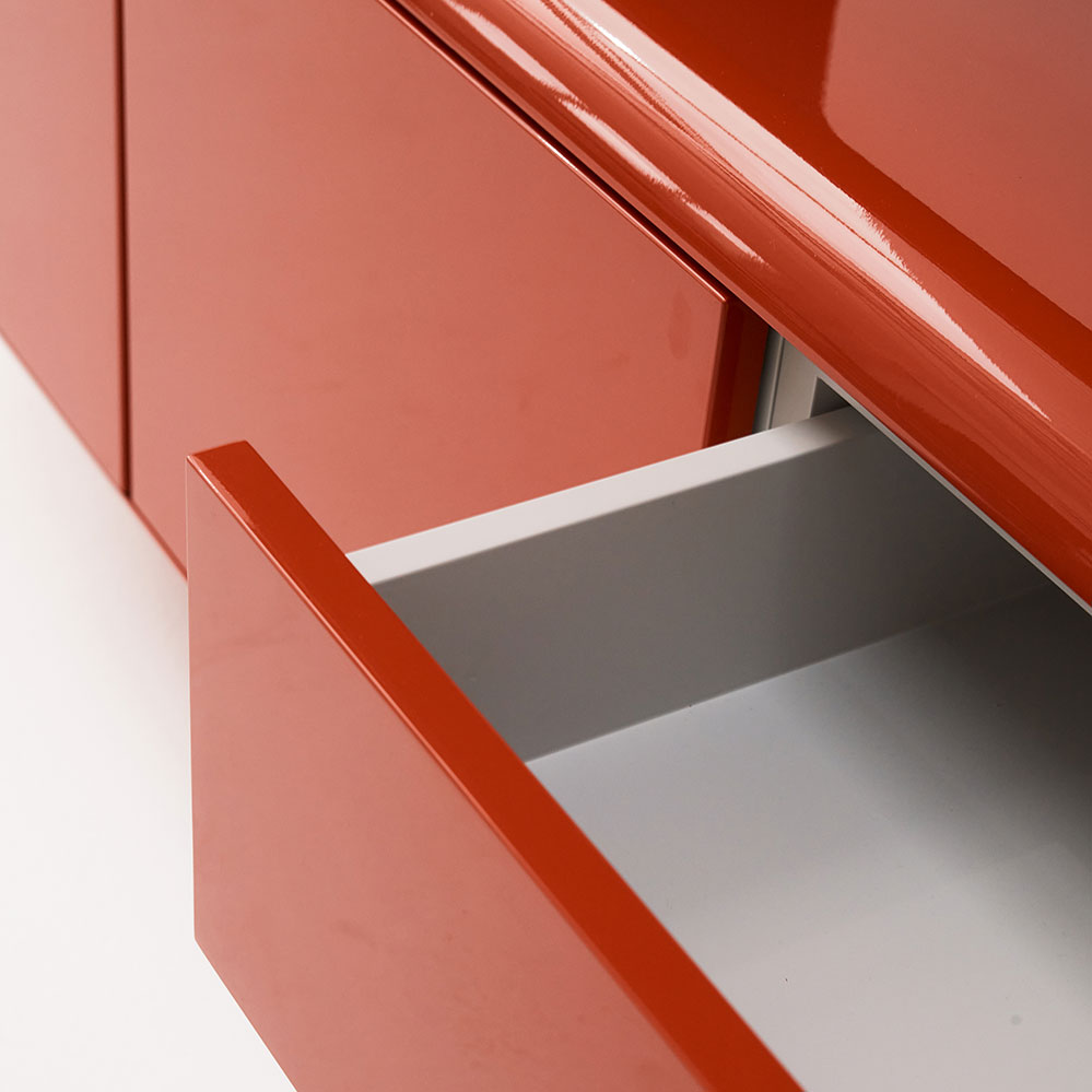 - Schränke, Türen und Schubladen aus MDF, hochglänzend lackiert