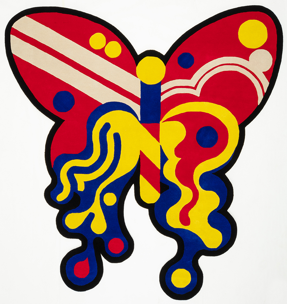 Der farbenfrohe Farfalla-Teppich in Form eines Schmetterklings basiert auf dem grafischen Werk der Designgruppe Archizoom und wurde 2023 im Rahmen der Teppichkollektion von Poltronova aufgelegt. Vorangegangen war eine umfangreiche Recherche in den Archiven von Centro Studi Poltronova. Das Ergebnis sind verschiedene Teppiche von den Gruppen Archizoom und Superstudio, die zusammen mit cc-tapis realisiert wurden. Das Motiv des Prato Teppichs ist von dem Farfalla-Dekor inspiriert, das 1967 von der Gruppe Archizoom auf der Suche nach einem Kontrast zwischen dem floralen Jugendstildekor und den Experimenten der Pop Art – ähnlich wie bei Arbeiten von Künstlern wie Roy Lichtenstein und Andy Warhol – jener Jahre entworfen wurde.