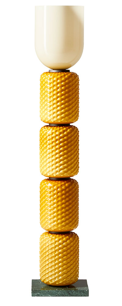 - Glas Gelb, Korpus Olivgrün, Fuß Marmor Nero Marquina (4. Abbildung)