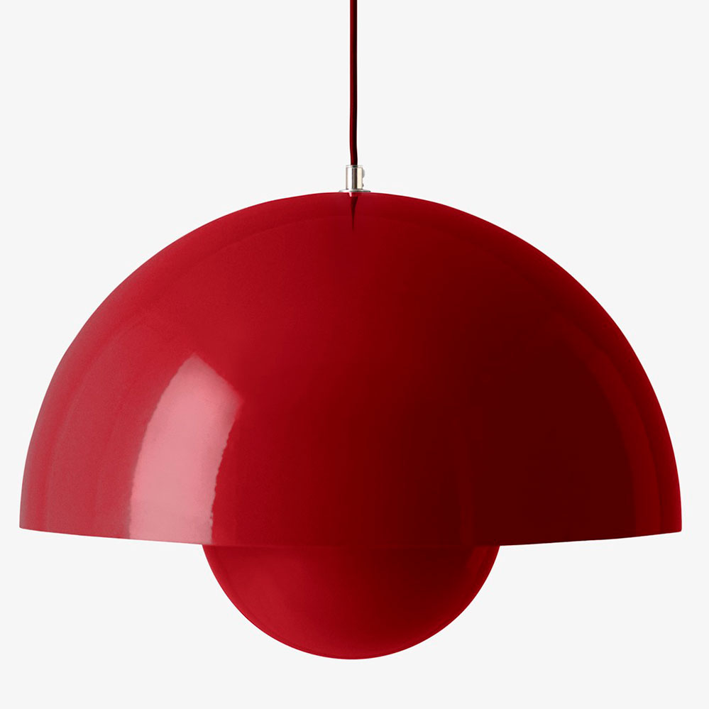 Die Flowerpot Big Pendelleuchte mit 50 cm Durchmesser ist die große Variante von Verner Pantons berühmten und erfolgreichen Entwurf aus den 1960er Jahren. Erhältlich ist die große Flowerpot aus glänzend oder matt lackiertem Aluminium in folgenden Ausführungen: