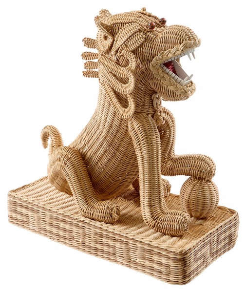 Die Foo Dog Skulptur ist als Dekoration gedacht und wird aus Korbgeflecht gefertigt. Der Entwurf von Jonathan Adler stammt aus dem Jahr 2022, die Herstellung eines Hundes erfolgt durch einem einzigen Handwerker im Laufe von vier Tagen. Weitere zwei Tage werden benötigt die Skulptur von Hand zu trimmen.
