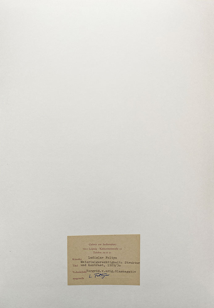 Die Fotostudie „Materialgerechtigkeit; Struktur und Kontrast” des Bauhäuslers und tschechischen Künstlers Ladislav Foltyn stammt aus dem Jahr 1929/30 und entstand am Bauhaus in Dessau.