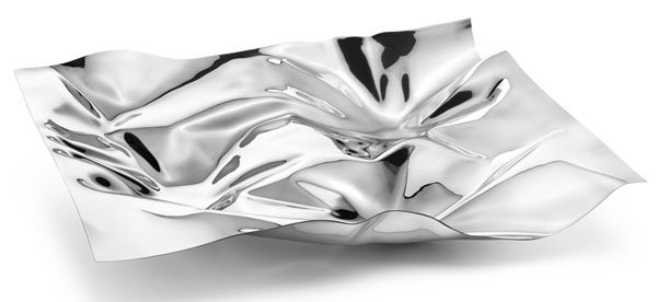 Die Schale, die an ein zerknittertes Blatt Papier erinnern soll, wurde in den 1980er Jahren von Georg Jensen zuerst aus reinem Silber hergestellt. Später wurde eine preiswerte Variante aus durchgefärbtem Acryl von Dansk Acryl Teknik produziert, dann aus satinierten Glas von & tradition. 2012 nahm Georg Jensen die Produktion der Fruchtschale wieder auf - diesmal in Edelstahl. Erhältlich in zwei verschiedenen Größen:
