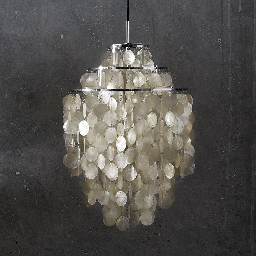 Ein noch heute sehr beliebter Leuchtenklassiker ist die Fun Lamp von Verner Panton mit ihren charakteristischen, echten Muschelplatten. Häufig kopiert, unterscheiden sich die Proportionen des Originals von Verpan von den zahlreichen Billig-Kopien. Ab 1964 entwarf Panton für den Schweizer Hersteller J. Lüber eine ganze Serie verschiedener Muschelleuchten, die durch Luftzug oder Wärme leise Geräusche entstehen lassen.