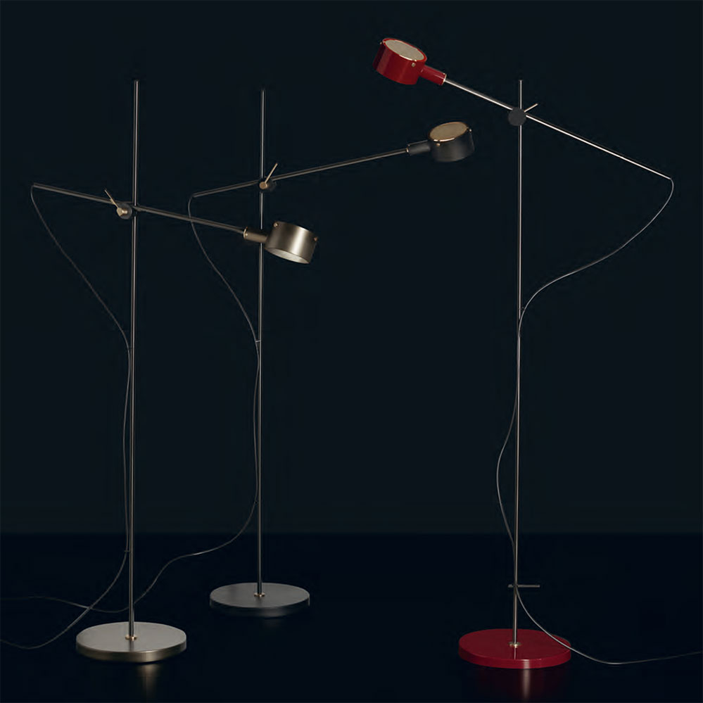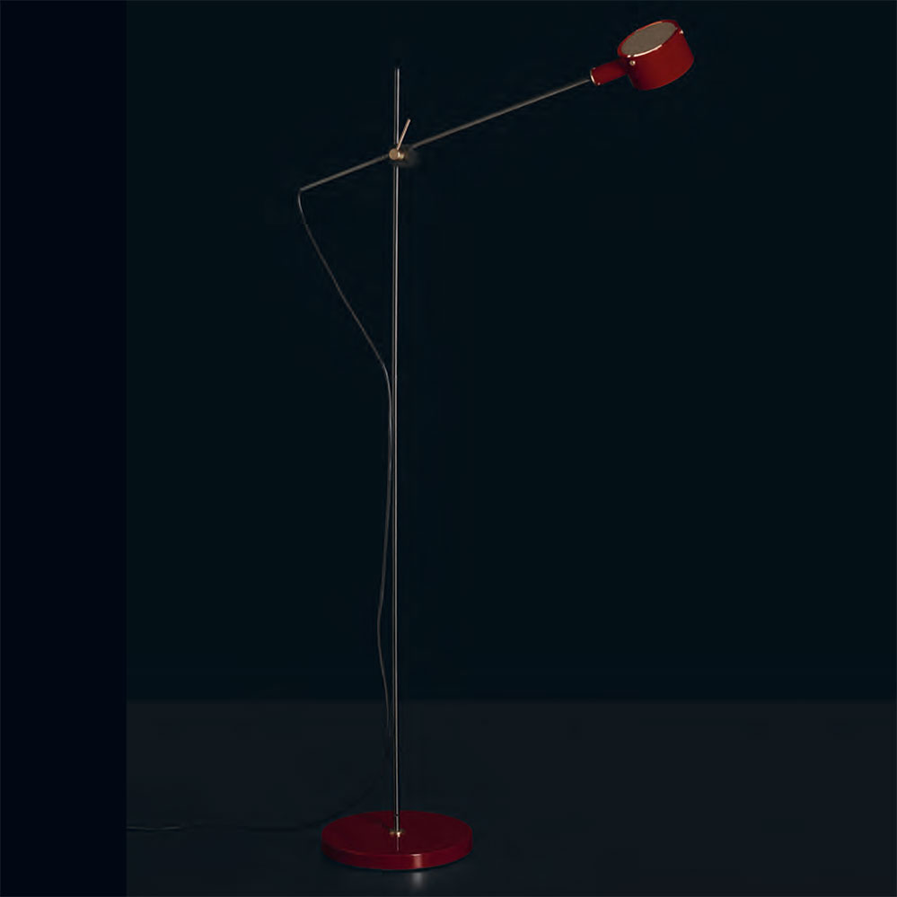 Die höhenverstellbare und schwenkbare Stehleuchte G.O. wurde im Jahr 1961 von dem Oluce-Gründer Giuseppe Ostuni entworfen und 2022 als Neuauflage zusammen mit der gleichnamigen Tischlleuchte in je drei Farben präsentiert. Die Leuchte überzeugt mit ihrem eleganten Metallfinish in Kombination und einem satinierten Messington.