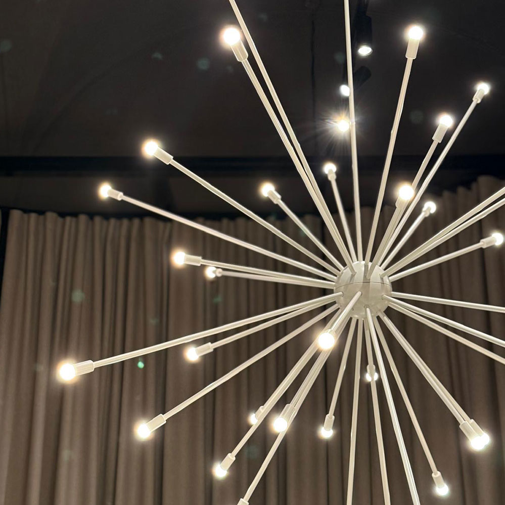Eine Pendelleuchte von den Eames? Dazu noch eine Sputnikleuchte? 1949 entwarf das Eames-Ehepaar für die Ausstellung „An Exhibition for Modern Living“ im Detroit Institute of Arts diesen Leuchtentyp, der Prototyp wurde im Eames Office in Venice aus Autoteilen und Messingrohren unterschiedlicher Größe hergestellt und in eine Holzkugel eingesetzt. Mit der Formgebung nahmen die Eames die späteren Sputnik-Leuchten vorweg - diese entstanden erst rund 10 Jahre später nach dem sogenannten Sputnik-Schock 1957, als die Sowjetunion den ersten Satelliten ins Weltall sendete.