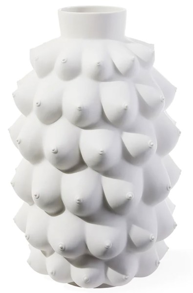 Die busenförmige Vase von Jonathan Adler zählt zu seiner surrealistischen Muse Collection. Inspiriert ist die Form von der amerikanischen Künstlerin Georgia O'Keeffe, Ehefrau und Muse des Kunsthändlers und berühmten Fotografen Alfred Stieglitz. Gedacht ist die ca. 43 cm hohe Vase als Blickfang auf dem Sideboard oder als Masterpiece auf dem Esstisch.