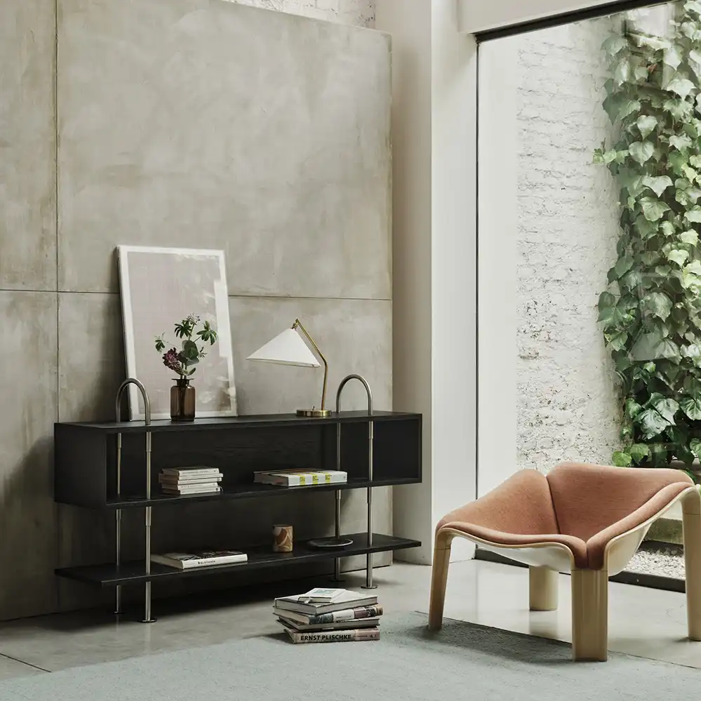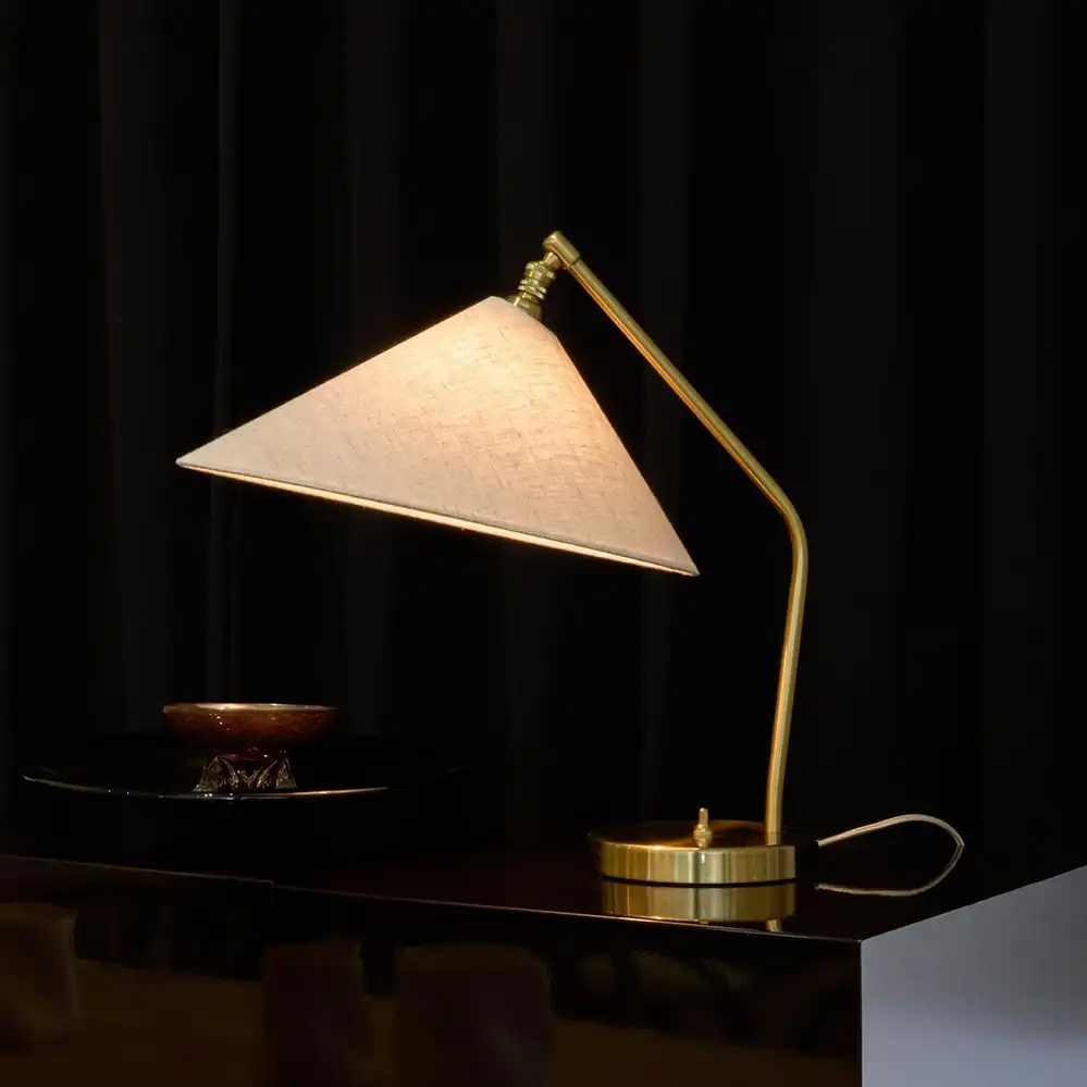 Basierend auf einem frühen Prototyp von Greta M. Grossman präsentierte GUBI im Jahr 2025 eine neue Edition der ikonischen Gräshoppa Tischleuchte. Der vergrößerte Lampenschirm aus natürlichem Leinen ergänzt die bestehende Gräshoppa Kollektion und fügt sich harmonisch in das charakteristische Design mit geneigtem Stab und rundem Sockel aus poliertem Messing ein. Er sorgt für eine sanfte Lichtverteilung und lässt sich flexibel ausrichten.
