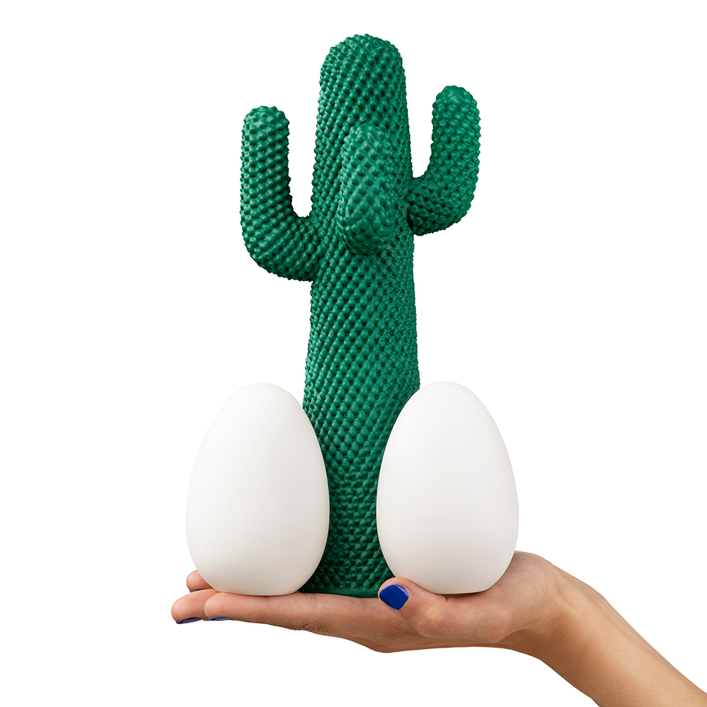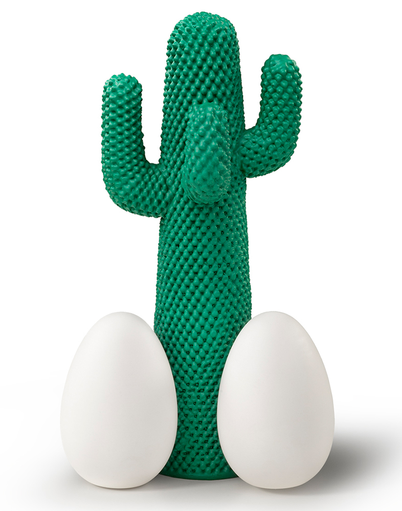 1972 entwarfen Guido Drocco und Franco Mello den berühmten Cactus. Als ironisches Totem verkörpert er die Gestaltungsideen und den Gestaltungshumor dieser Ära in den 1970er Jahren. Das ikonische Objekt kann als Garderobe oder als dekoratives Element verwendet werden. Das ursprüngliche Konzept von Gufram sah immer vor, dass der Cactus in limitierten Editionen in einer Farbgebung produziert wird.