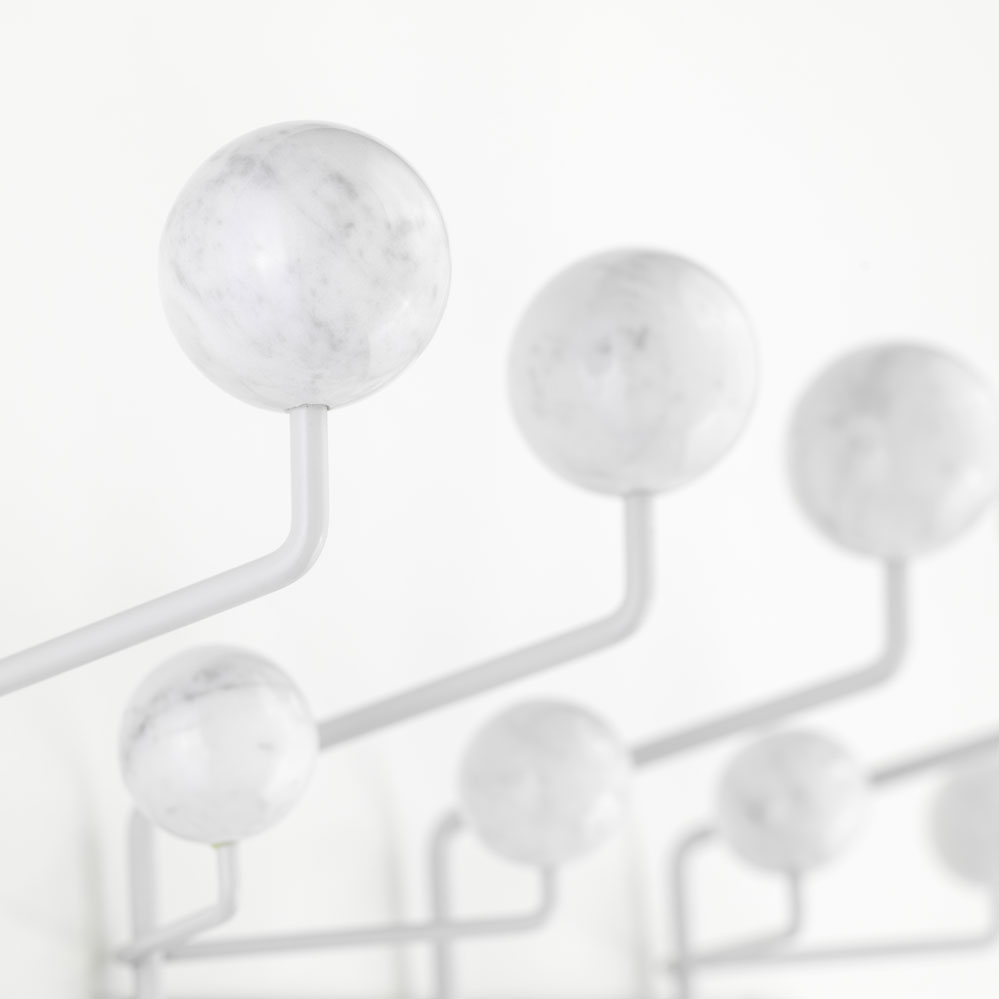 Zum Herbst 2020 legt Vitra 2019 wird die Garderobe Hang it all von Charles Eames in einer besonderen Variante auf: Denn die Kugeln sind nicht aus Holz – sondern aus hellem Carrara-Marmor. Diese zurückhaltend edle Special-Edition ist dabei auf 999 Exemplare limitiert, jedes Exemplar ist nummeriert.