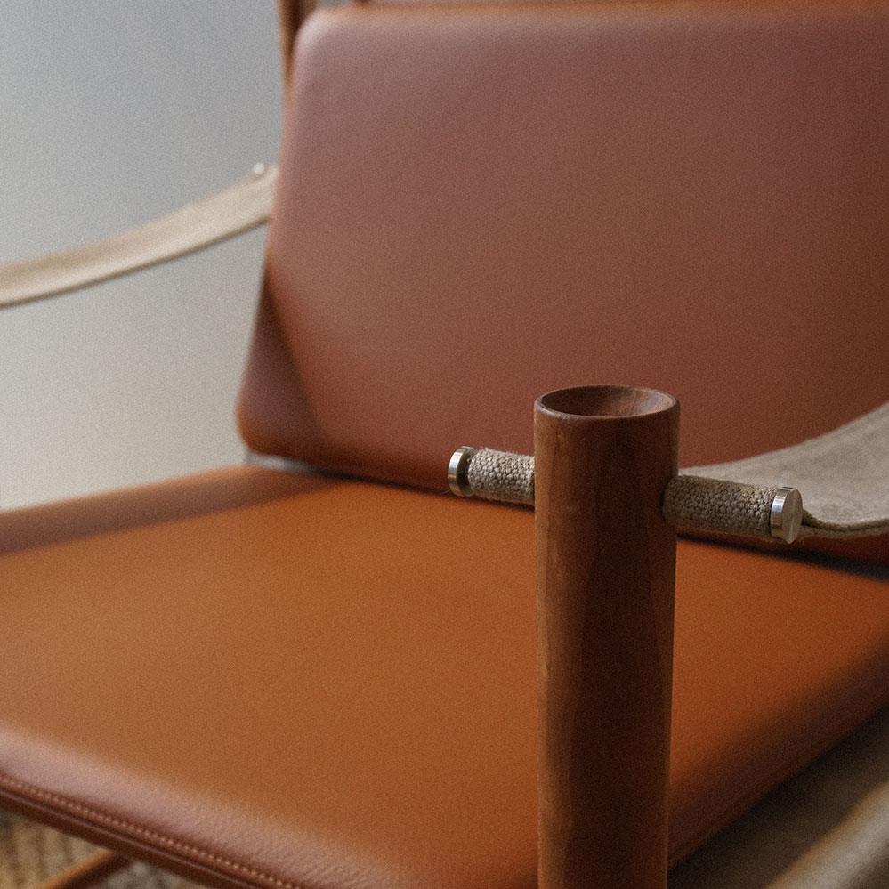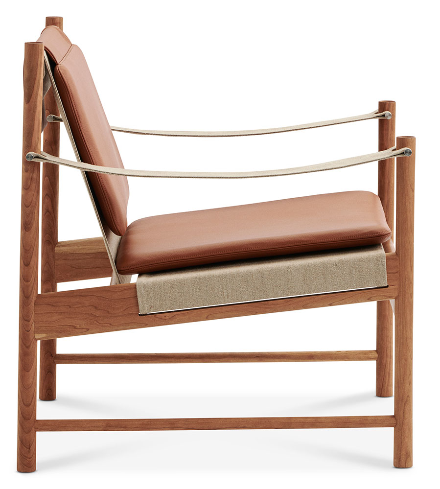 Den HB Lounge Chair entwarf der dänische Architekt und Designer Hans Bølling 2022 im hohen Alter von 91 Jahren, das Konzept der Möbelserie basiert dabei auf seinem Tray Table aus den 1950er Jahren. Produziert wird der Safari Lounge Chair von der Manufaktur BRDR. Krüger in Dänemark wahlweise in Ahorn, Eiche, oder Kirsche. Neben der hier angebotenen Variante mit den Lederkissen ist der HB Lounge Chair zusätzlich mit Leinenkissen erhältlich (siehe unten) sowie der passende HB Stool.