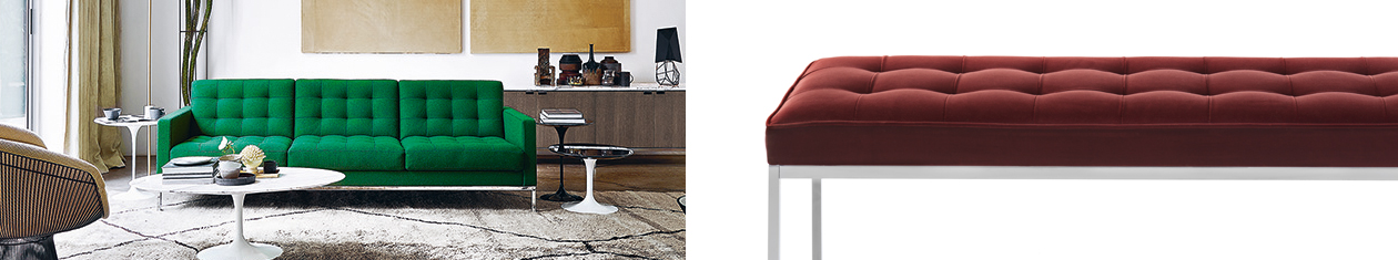 - Knoll Sitzbank: Gepolsterte Sitzbank, erhältlich als Zwei- oder Dreisitzer