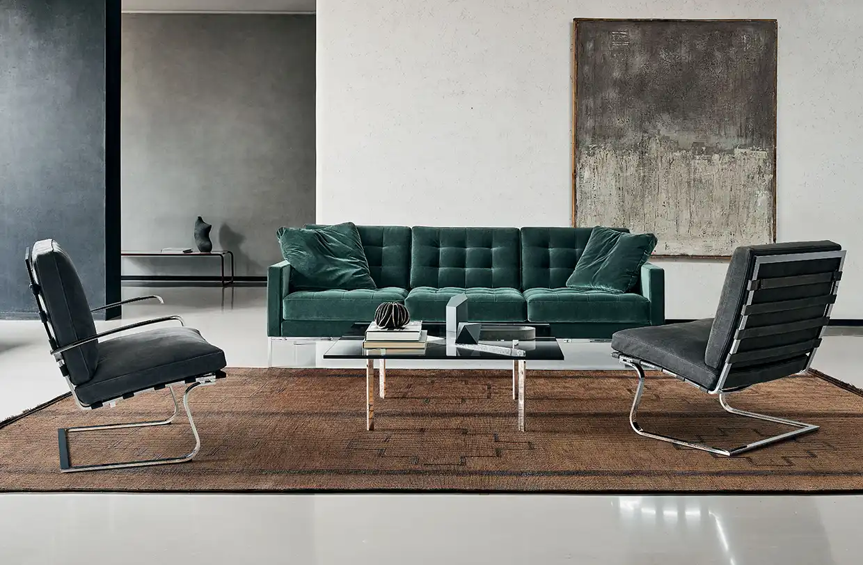 Sofa von Florence Knoll in Kombination mit Thugenhat Sesseln ihres Mentors Ludwig Mies van der Rohe