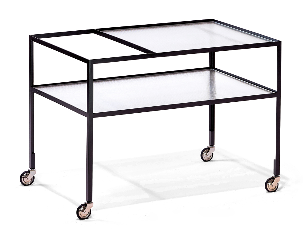 Der Bauhaus-Schüler Herbert Hirche schuf 1956 den berühmten Barwagen, der Entwurf gilt als eine Ikone des rationales Designs nach dem Zweiten Weltkrieg in Deutschland. Mit einem Gerüst aus Winkelprofilen und den beiden satinierten, geriffelten Glasplatten überzeugt der Entwurf durch seine Reduktion. Ursprünglich wurde der Barwagen in den 1950er Jahren von der Firma Holzäpfel hergestellt; in den 1960er Jahren produzierte Rosenthal eine Edition. 2010 wurde der deutsche Designklassiker von Richard Lampert wieder aufgelegt.
