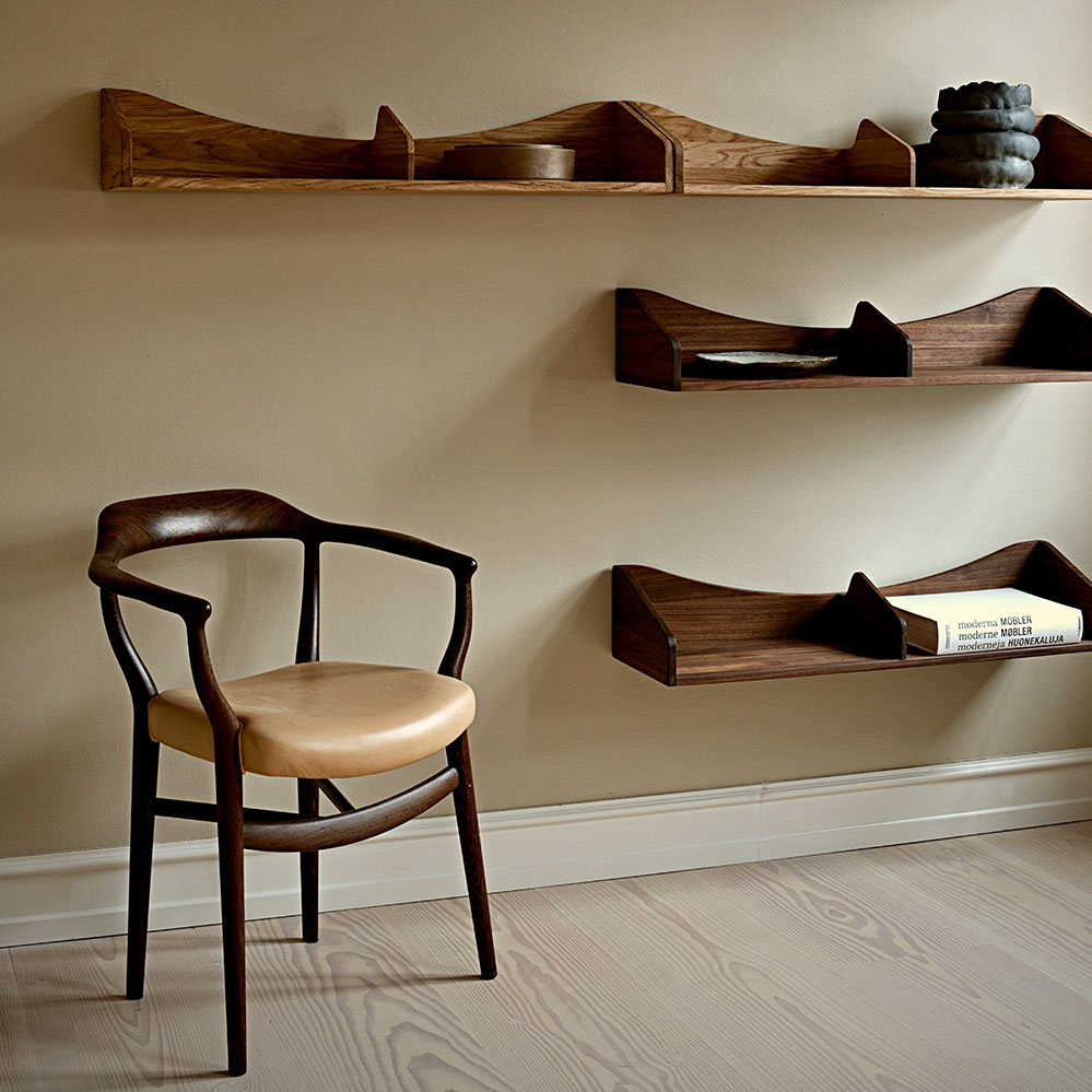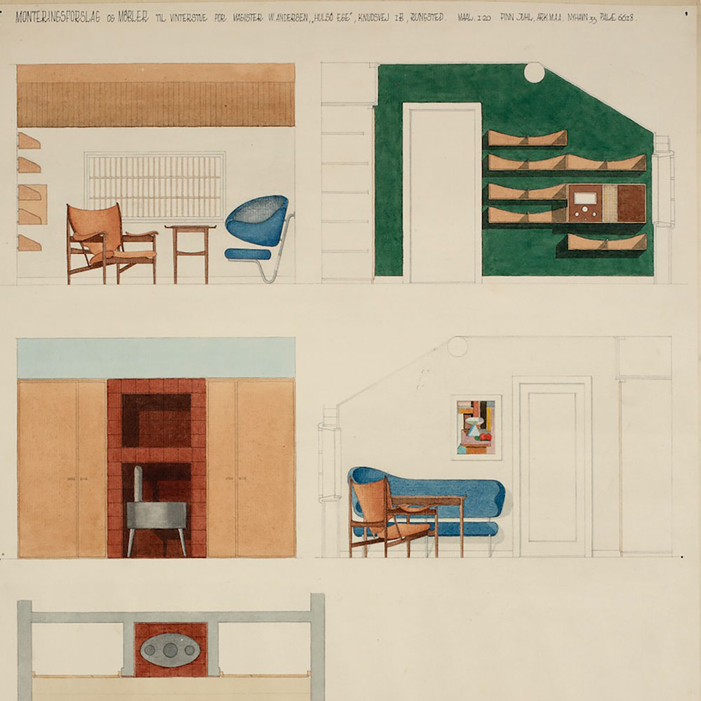 2024 legte House of Finn Juhl das sogeannte Hulsø Wandregal von Finn Juhl aus aus dem Jahr 1949 auf. Der Entwurf warursprünglich Teil einer Inneneinrichtung für den „Wintergarten” von Magister W. Andersen in Hulsø Ege, im dänischen Rungsted. Dieses Interieur, einschließlich des Regals, ist auf zwei Originalaquarellen von Finn Juhl abgebildet (siehe letzte Abbildung), auch gab eseine detaillierte technische Zeichnung des Regals von 1949. Das farbenfrohe Interieur zeigt auch Finn Juhls kühnes Wandsofa und sein berühmtestes Möbel, den Chieftain Chair, der im selben Jahr entworfen wurde.