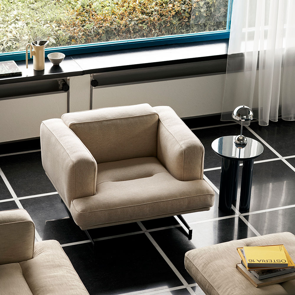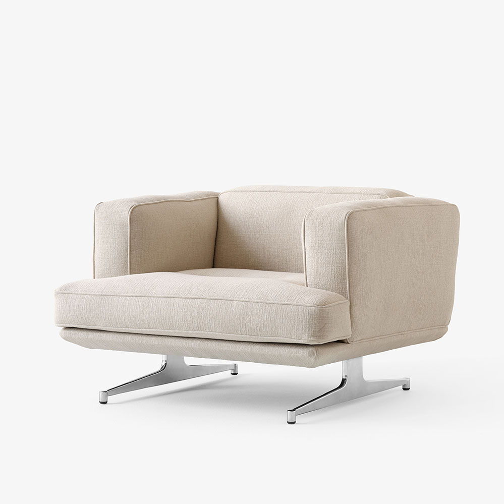 Inspiriert von klassischen Mid-Century-Designs, ist der Lounge Chair Inland ein Entwurf des norwegischen Designstudio Anderssen & Voll für &tradition und ergänzt als Sessel die Inland Sofa Kollektion. Der hier exemplarisch angebotene Lounge Chair im Stoff Hallingdahl von Kvadrat kann wahlweise mit schwarz pulverbeschichteten oder poliertem Aluminiumgestell ausgestattet werden. Weitere Ausführungen mit anderen Stoffen oder in Leder sind auf Anfrage ebenfalls erhältlich.