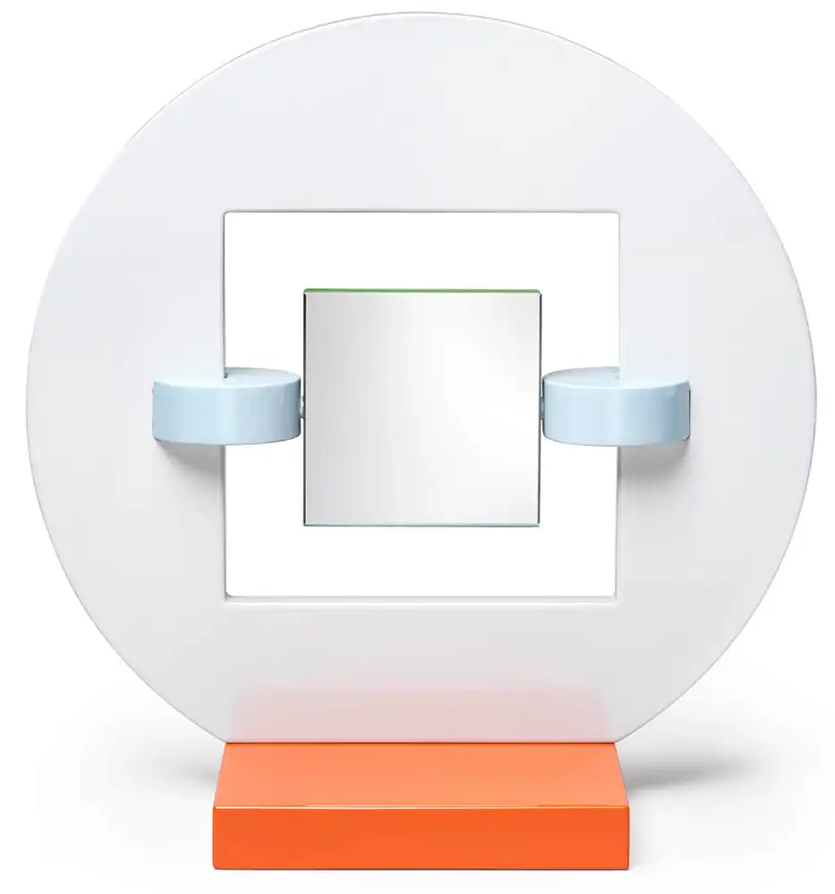1985 entwarf Michele De Lucchi für die Zeitschrift Donna einen kleinen Tischspiegel als Weihnachtsgeschenk. Dieser Spiegel wurde zur Inspiration für die beiden Spiegel Ionian und Dorian, die 2025 in die Kollektion von Memphis Milano aufgenommen wurden. Dorian und Ionian sind aus lackiertem Holz; bei beiden Spiegeln ist das Glas auf einem Scharnier befestigt, so dass der Spiegel nach Bedarf oder Wunsch gedreht werden kann. Bei dem Spiegel Dorian ist die Spiegelfläche rund und auf einem quadratischen Träger befestigt, während bei Ionian der Spiegel quadratisch ist. und auf einem Kreis platziert ist. Ein runder oder rechteckiger orangefarbener Sockel passt sich der Form des Spiegels an, dessen Rand grün ist.