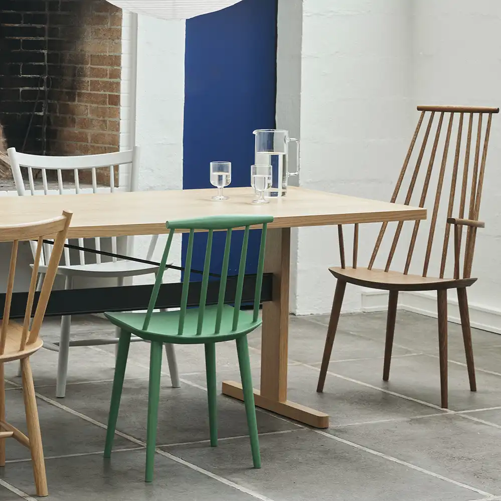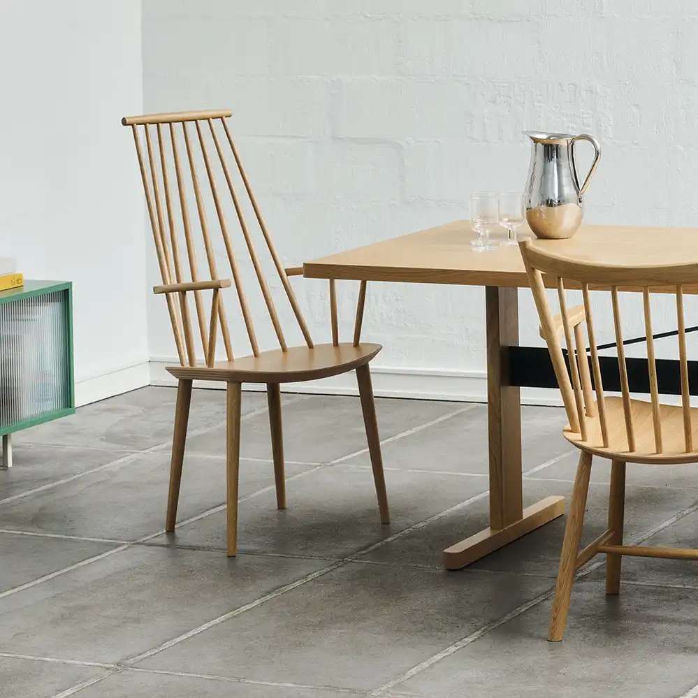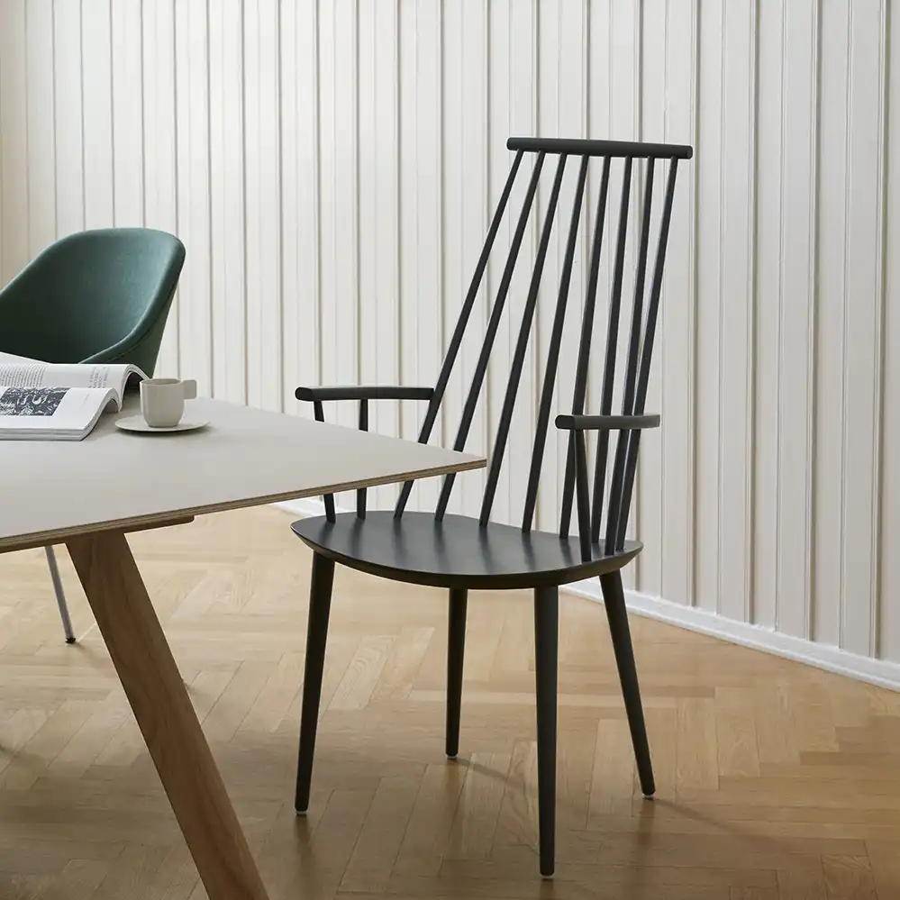 Der J110 Armlehnstuhl von Poul Volther ist Bestandteil einer Möbelserie, die in den 1940er und 50er Jahren als preiswerte Möbel von der dänischen FDB Genossenschaft (Fællesforeningen for Danmarks Brugsforeninger) hergestellt wurden. Zu dieser Möbelserie zählen die Sitzmöbel J77 (Folke Pålsson), J104 (Jørgen Bækmark) und J41 / J42 (Børge Mogensen), die von HAY neu aufgelegt und behutsam den heutigen Sitzgewohnheiten angepasst wurden.