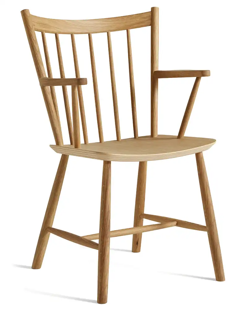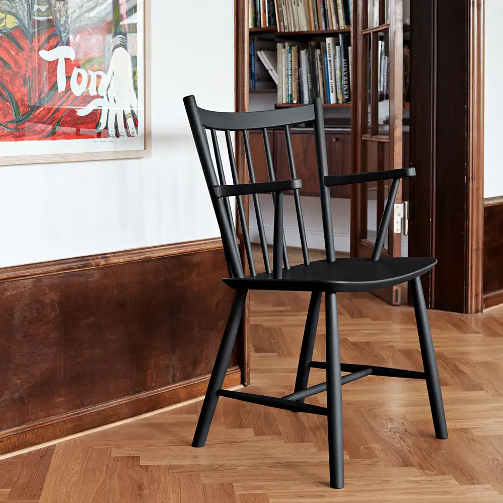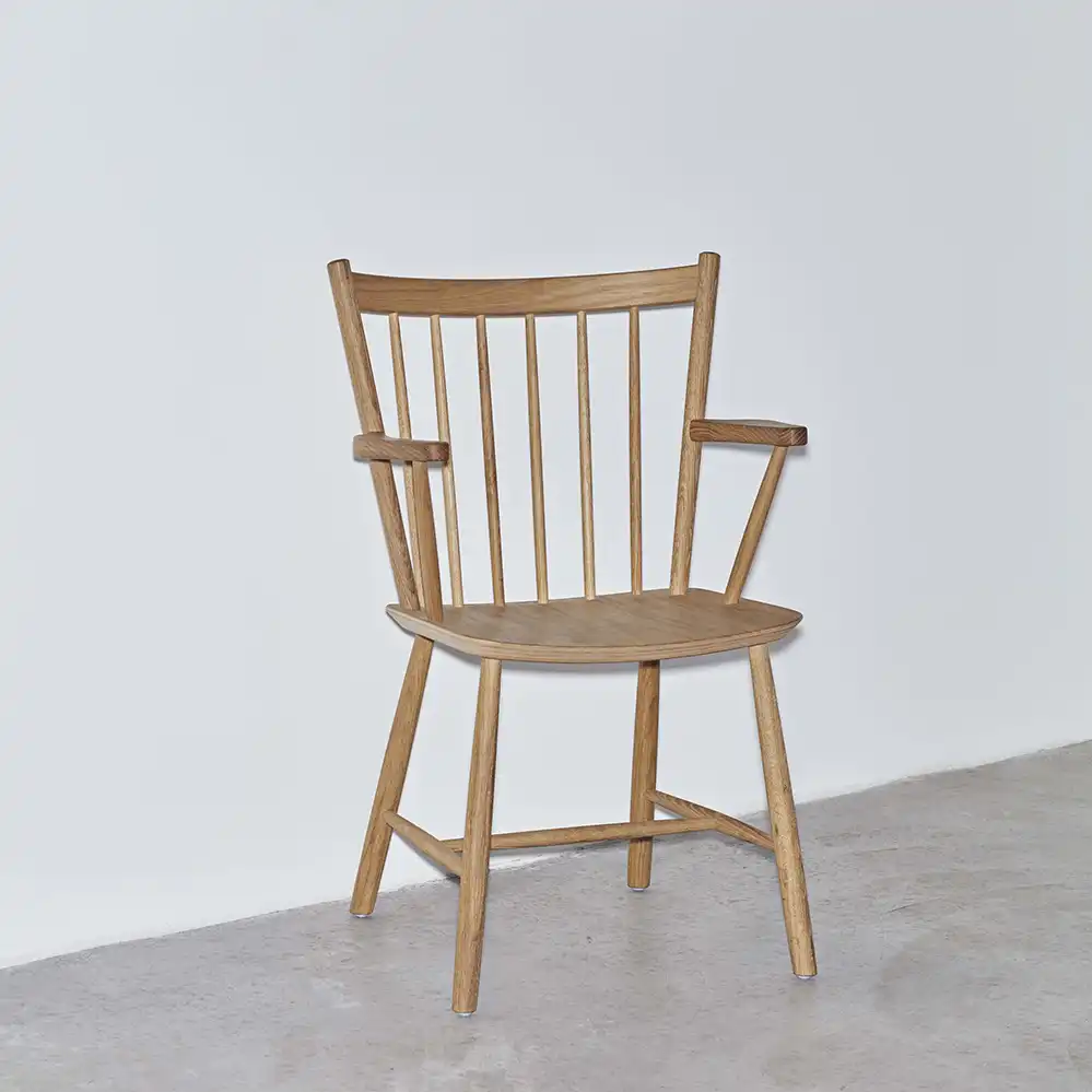 Der J42 Chair ist Bestandteil einer Möbelserie, die in den 1940er und 50er Jahren als preiswerte Möbel von der dänischen FDB Genossenschaft (Fællesforeningen for Danmarks Brugsforeninger) hergestellt wurden. Zu dieser Möbelserie zählen die Sitzmöbel J77 (Folke Pålsson), J110 (Poul M. Volther), J104 (Jørgen Bækmark) und J41 (Børge Mogensen), die von HAY neu aufgelegt und behutsam den heutigen Sitzgewohnheiten angepasst wurden.