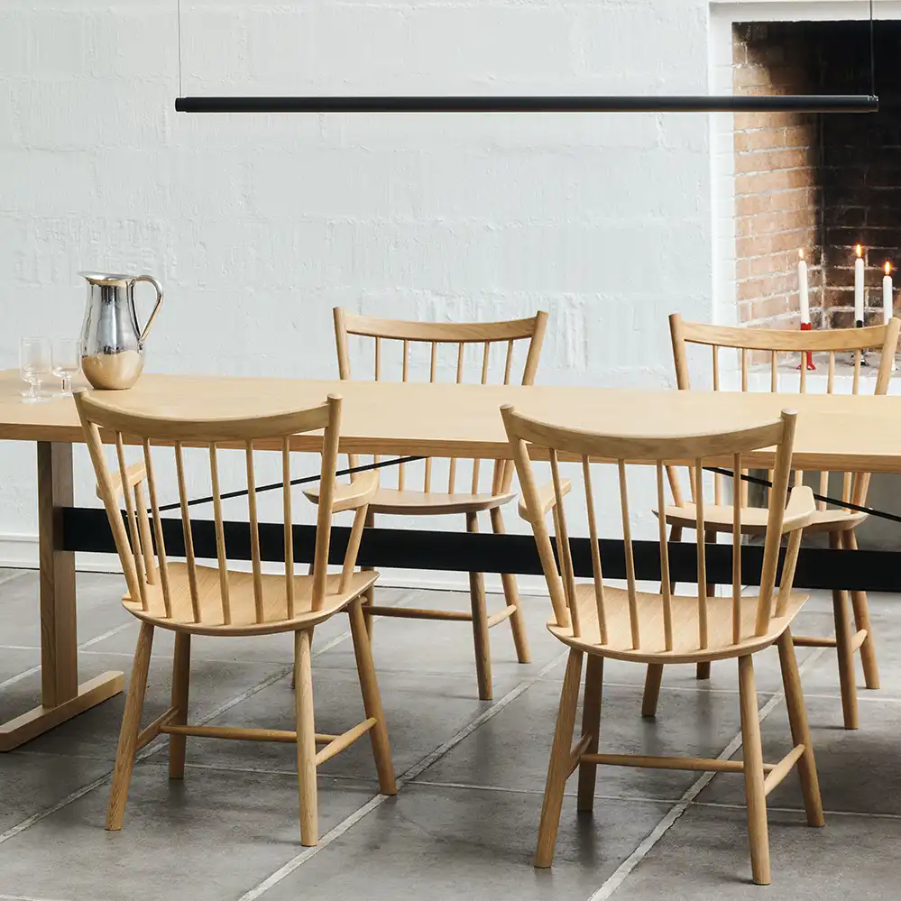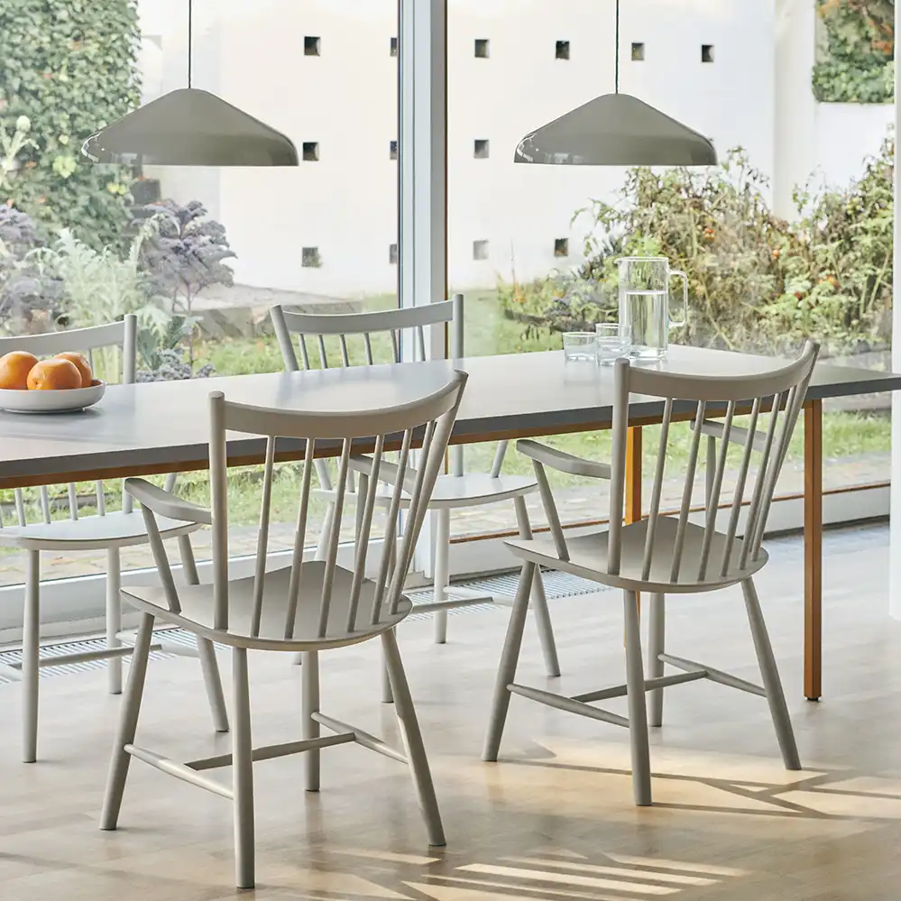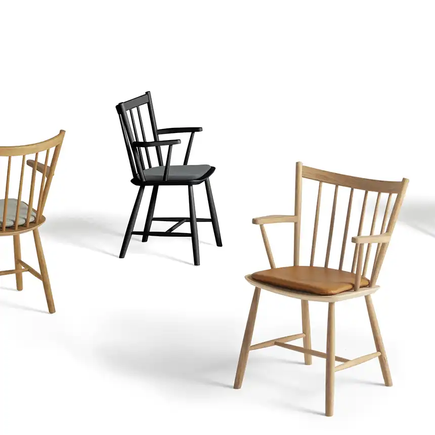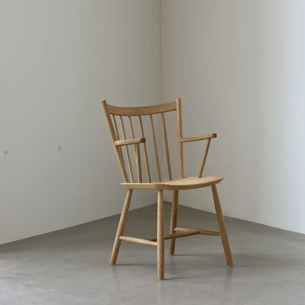 Der J42 Chair ist Bestandteil einer Möbelserie, die in den 1940er und 50er Jahren als preiswerte Möbel von der dänischen FDB Genossenschaft (Fællesforeningen for Danmarks Brugsforeninger) hergestellt wurden. Zu dieser Möbelserie zählen die Sitzmöbel J77 (Folke Pålsson), J110 (Poul M. Volther), J104 (Jørgen Bækmark) und J41 (Børge Mogensen), die von HAY neu aufgelegt und behutsam den heutigen Sitzgewohnheiten angepasst wurden.
