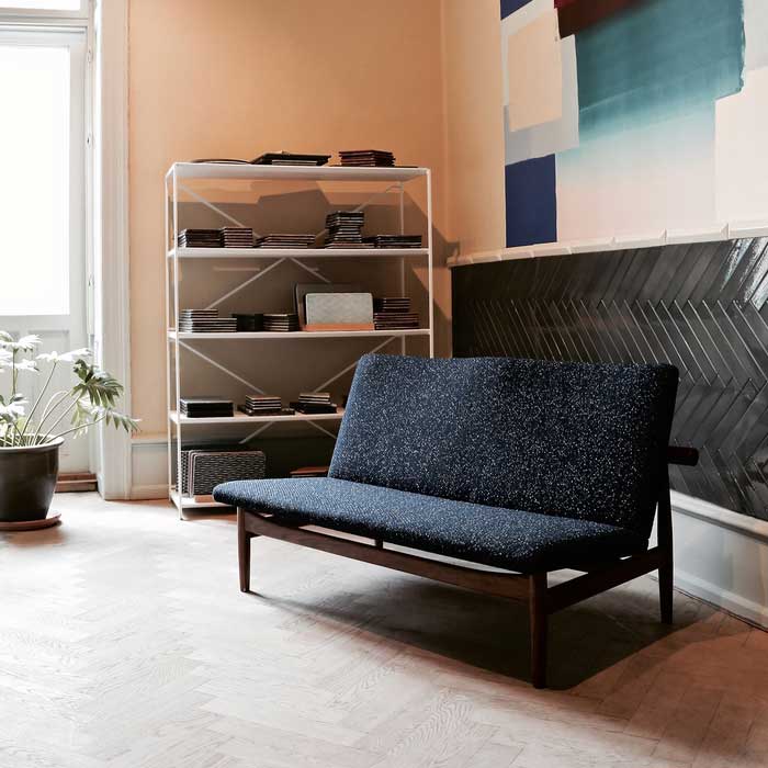 Das Japan Sofa von Finn Juhl entstand im Jahr 1957 und wurde ursprünglich von France & Son in Dänemark produziert. Die Serie bestand aus Sessel, Sofa und einen Hocker und zeichnet sich durch ihre Leichtigkeit aus. Als Standard empfehlen wir das Japan Sofa in dem kostspieligeren Nussbaum an, welches nach unserer Ansicht zu der Möbelserie von der Anmutungpasst. Erhältlich ist das Sofa von House of Finn Juhl wahlweise als 2-Sitzer oder als 3-Sitzer bei Markanto als Standard in dem Remix-Stoff von Kvadrat, weitere Stoffe oder Leder gerne auf Anfrage.
