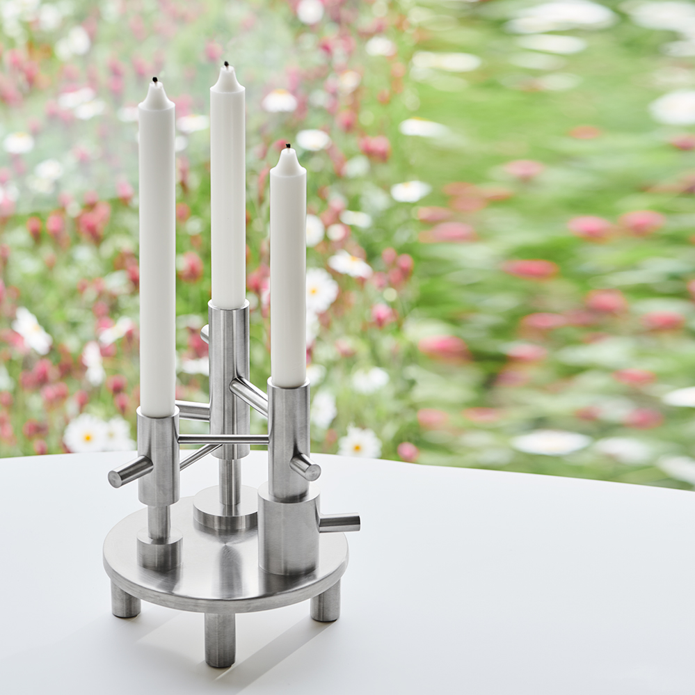 Der dreiflammige Kerzenständer aus Messing ist Jaime Hayons Interpretation klassischer Kandelaber, wie sie bereits seit Jahrhunderten in Gebrauch sind. Der Kandelaber ist Bestandteil der Kollektion Objects by Fritz Hansen - kleine, hochwertige Accessoires in einem funktionellen Design. Alle Fritz Hansen Messing Kerzenleuchter sind zusätzlich klar lackiert, so hält der warme Messington über Jahre und es entsteht kaum Patina. Seit 2021 ist der Kerzenleuchter auch in Edelstahl erhältlich.