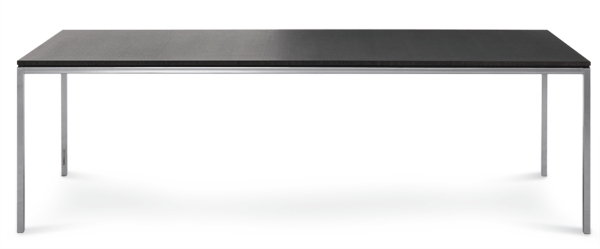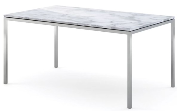 Der rechteckige Esstisch in dem für Florence Knoll typischen, reduzierten, funktionalen Design ist optional noch in dem Format 240 x 100 cm erhältlich. Der Entwurf von Florence Knoll stammt aus dem Jahr 1954. Schon damals waren diese funktionalen Tische in zahlreichen Größen und mit den unterschiedlichsten Tischplatten bei Knoll verfügbar. Basis war immer ein quadratisches Vierkantprofil für das Gestell, auf dem die Tischplatte bedingt durch die typische Schattenfuge zu schweben schien. Heute sind die Florence Knoll Tische immer noch in vielen Varianten erhältlich, wobei wir eine kuratierte Auswahl anbieten: