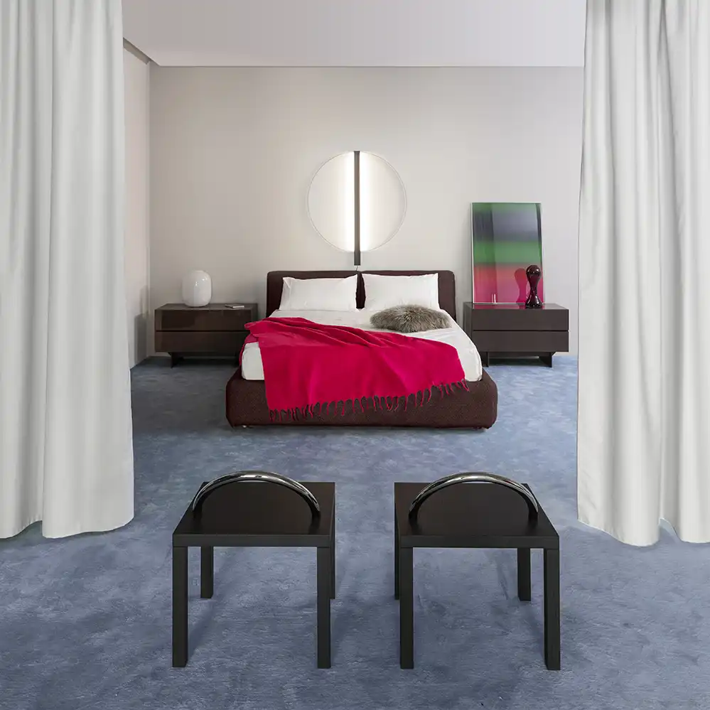 Der kleine Beistelltisch Ko-Ko mit dem Metallgriff ist exemplarisch für Shiro Kuramatas reduzierten Designansatz. Der minimalistische Entwurf aus dem Jahr 1986 sieht aus wie ein Stuhl – fungiert aber als Beistelltisch.