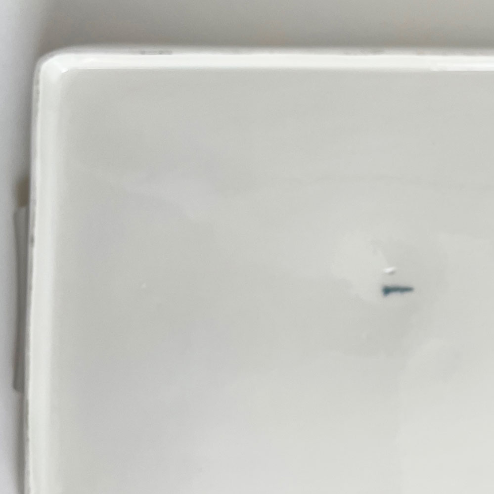 Das Tablett entwarf Gerhard Marcks im Jahr 1930 als Bestandteil des Konfektschalensatz bzw. der Rohkostplatte der KPM (Königliche Porzellan-Manufaktur) in Berlin, es war in verschiedenen Größen erhältlich. Die hier angebotene Version ist die größte Variante des Tabletts mit 40 cm Länge