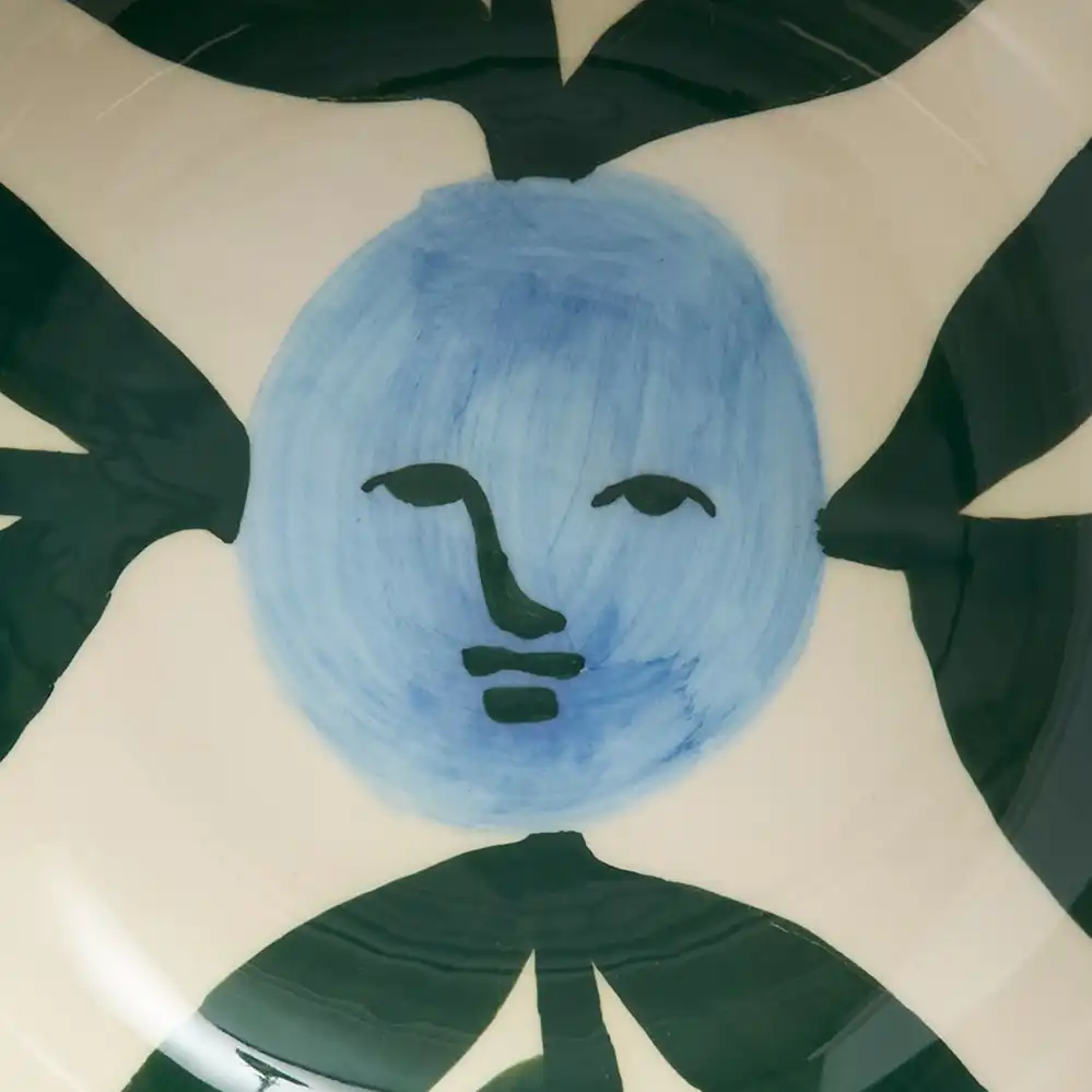 Die Steingutschale Moon Face Vine der amerikanischen Künstlerin Emma Kohlmann zählt zu ihrer La Pittura Keramikserie für HAY aus dem Jahr 2025. Die Pittura Kollektion aus Steingut (italienisch für „das Gemälde“) bringt Kohlmann ihr unverwechselbares visuelles Universum in Form charmanter, handbemalter Keramik in die häusliche Umgebung. Verspielte Motive aus ihrem Werk verwandeln sich in farbenfrohe Teller, Schalen, Tassen, Untersetzer, Vasen und Krüge, deren lebendige Farbtöne und vielfältige Formen im täglichen Gebrauch überzeugen.