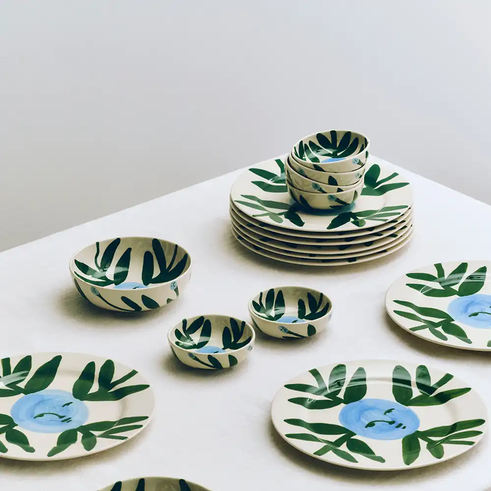 Die 1989 geborene Künstlerin Emma Kohlmann lebt und arbeitet in Massachusetts. Ihr Werk umfasst Zeichnung, Malerei, digitale Kunst und Literatur. Charakteristisch ifür ihre Arbeit ist Tusche und Aquarell – Techniken, die ihr erlauben, ein stetig wachsendes, intuitives Œuvre zu entwickeln. Aufgewachsen in der Bronx und zunächst im Tanz verortet, studierte sie am Hampshire College in Massachusetts Philosophie und feministische Theorie. Als Mitbegründerin von Mundus Press setzt sie sich gemeinsam mit ihrer Schwester für faire, kollaborative und erschwingliche Publikationen ein. Emma Kohlmann Arbeiten wurden in internationalen Einzel- und Gruppenausstellungen gezeigt und ihr charakteristischer Stil – organisch, poetisch, leicht naiv und zugleich subversiv – ist weltweit erkennbar. Für HAY überführt Emma Kohlmann diesen Stil erstmals in eine Keramikkollektion.