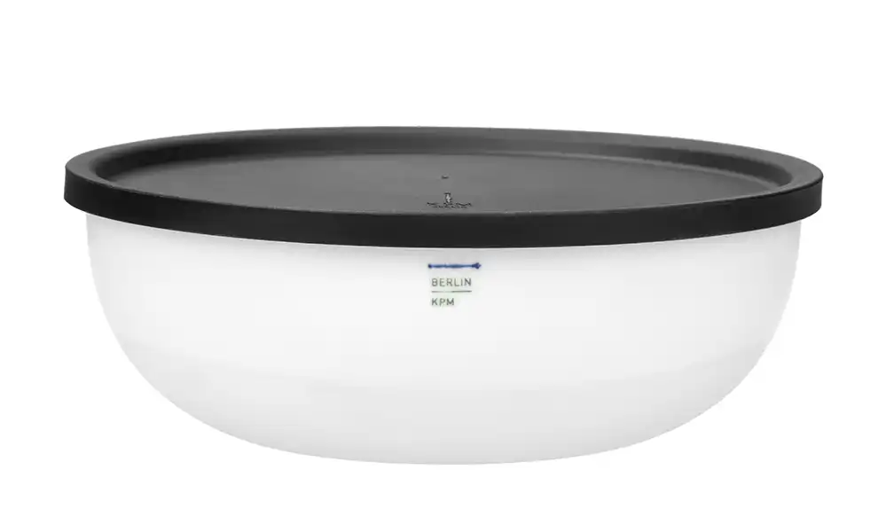 Die LAB To-Go Box ist ein nachhaltige Begleiter im Alltag. Mit seinen 1,1 Liter Fassungsvolumen und luftdicht schließendem Deckel lassen sich Speisen unkompliziert mitnehmen. Die Box zählt zur sogenannten LAB-Serie von KPM. Diese Serie ist vom LABorbereich der Manufaktur inspiriert, denn vom 18. bis zum Ende des 20. Jahrhundert produzierte KPM zahlreiche technische Kolbengefäße, Tiegel und Schalen mit funktionalen Formen und Charakter. Das Laborporzellan geriet allerdings in Vergessenheit, bis Thomas Wenzel, Art Director der KPM, es wiederentdeckte und als Gebrauchsporzellan zu neuem Leben erweckte. Die LAB-Serie ist sehr vielseitig und umfasst neben verschiedenen Tassen, auch To-Go Becher, Tisch- und Frühstückssets, Schalen und Vasen bis hin zu Seifenspendern und anderen Objekten.