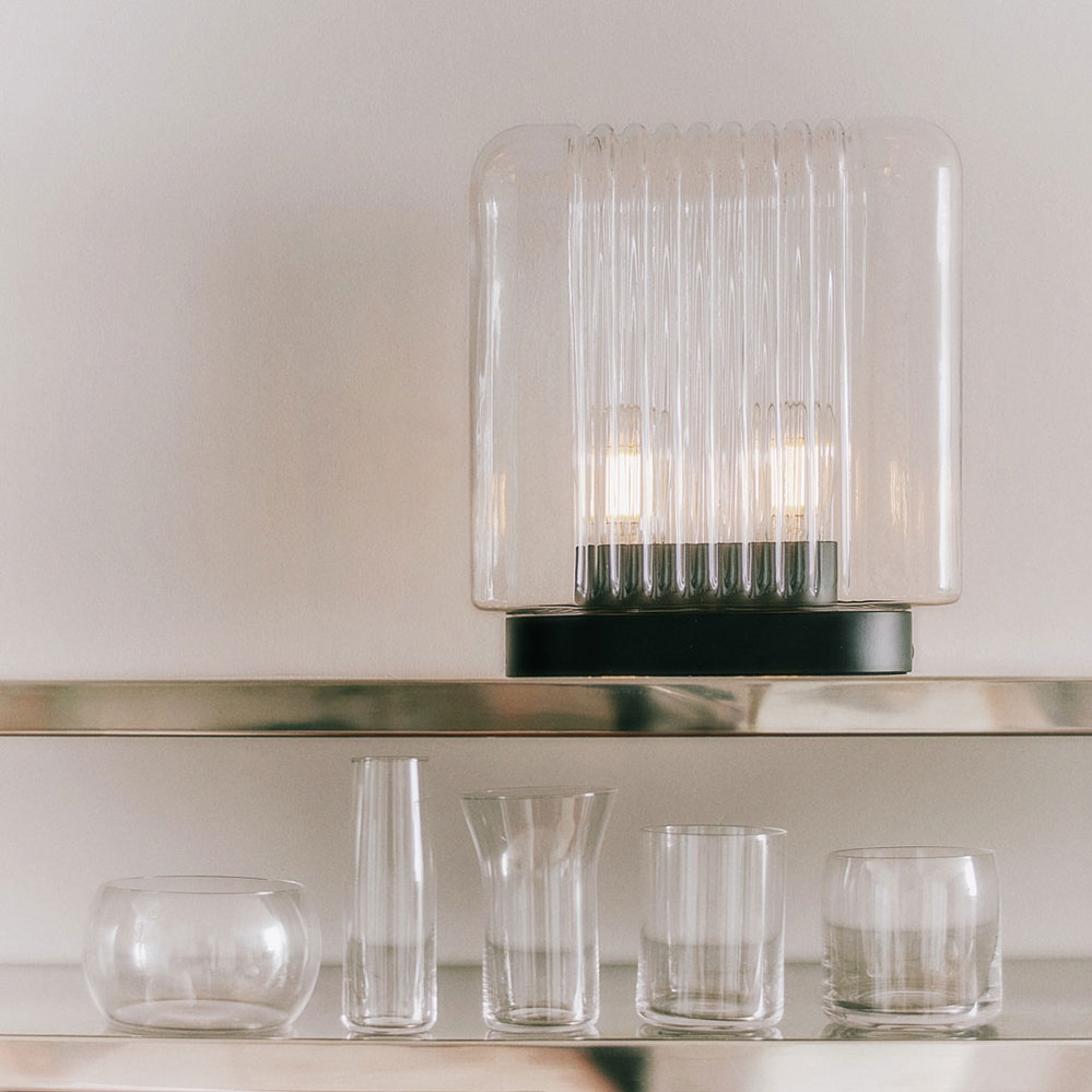 - Mundgeblasenes Glas, Sockel Aluminium, schwarz pulverbeschichtet