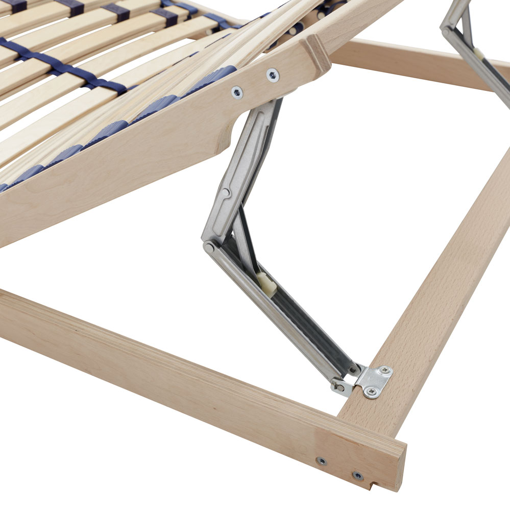 Das Lattenrost mit einem Massivholzrahmen ist passend zu der Stapelliege Komfort im Format Hierbei sind das Kopf- und Fußteil verstellbar, die Mittelzone verstärkt, auch ist die Liegehärte durch Schiebeelemente individuell einstellbar.