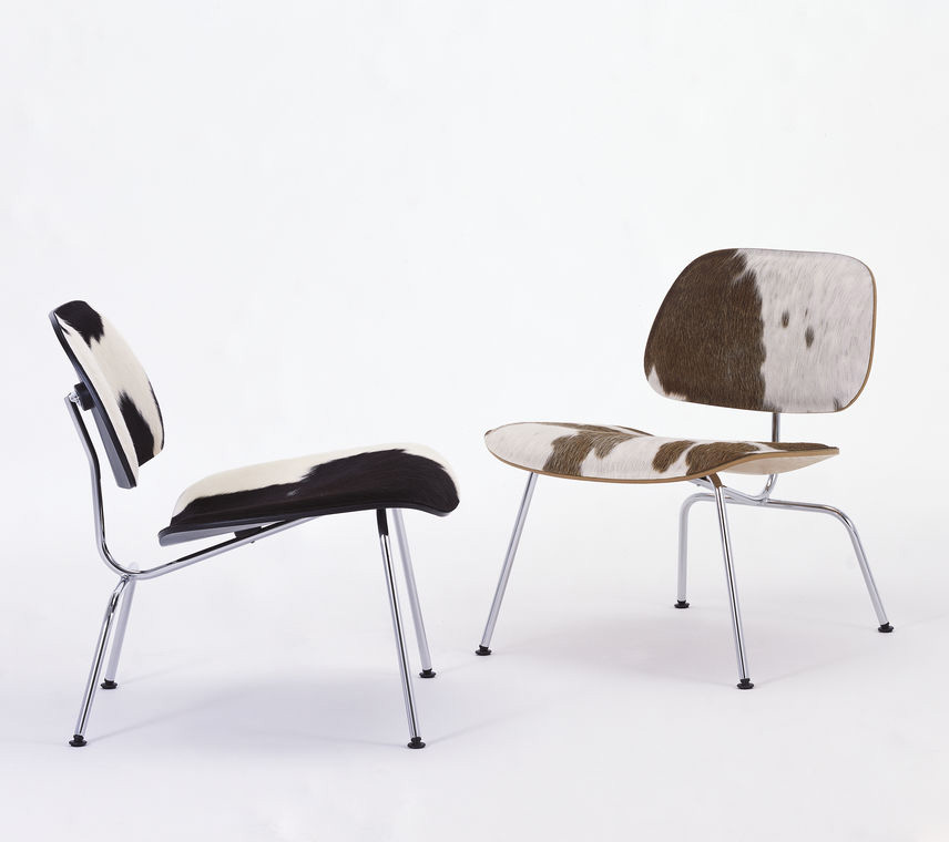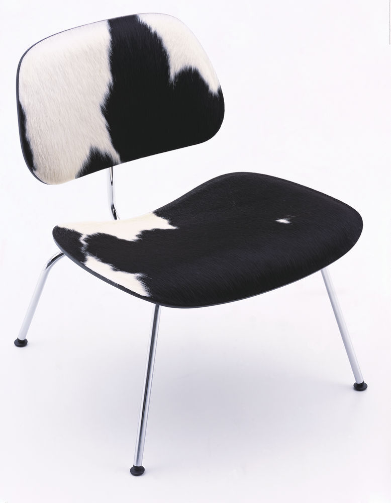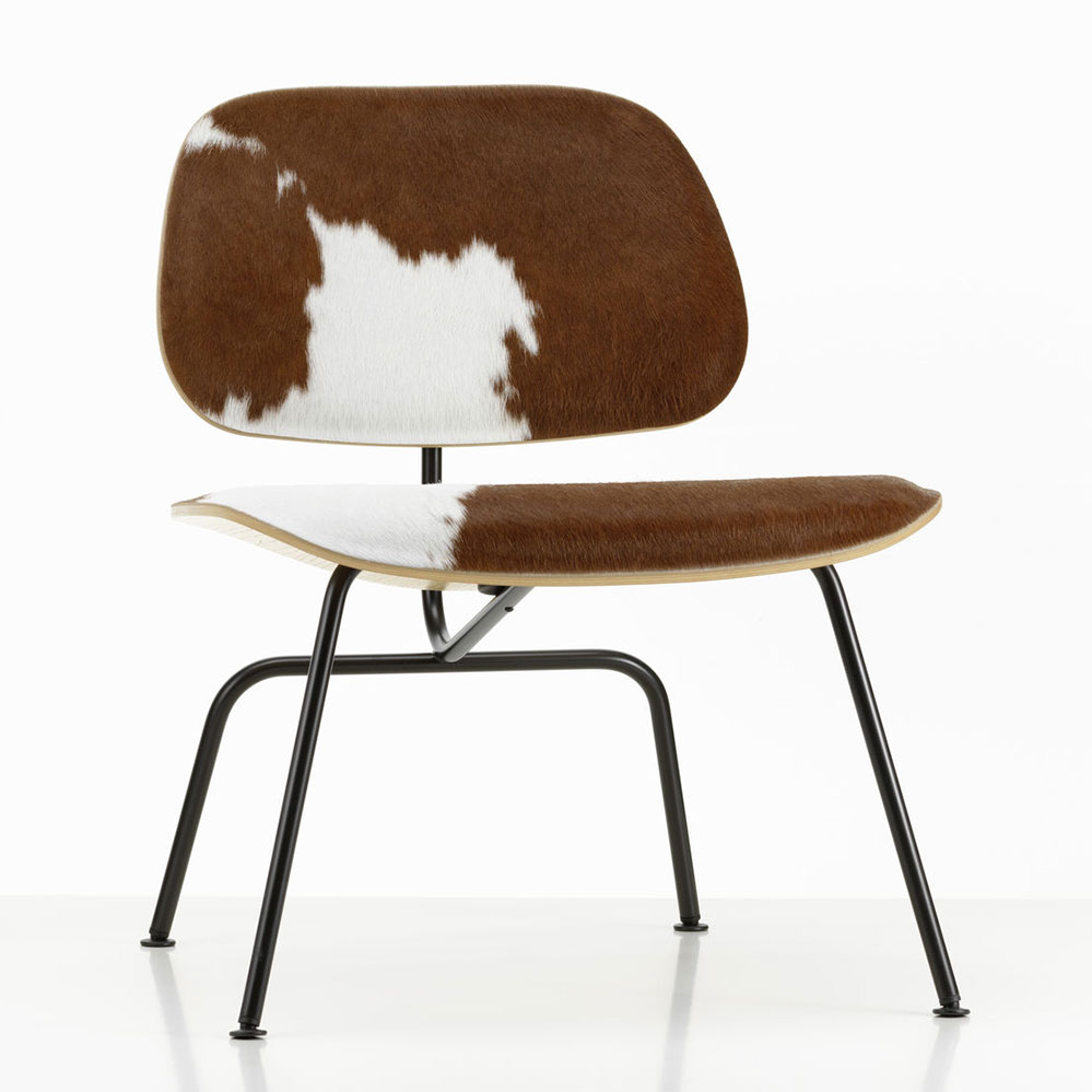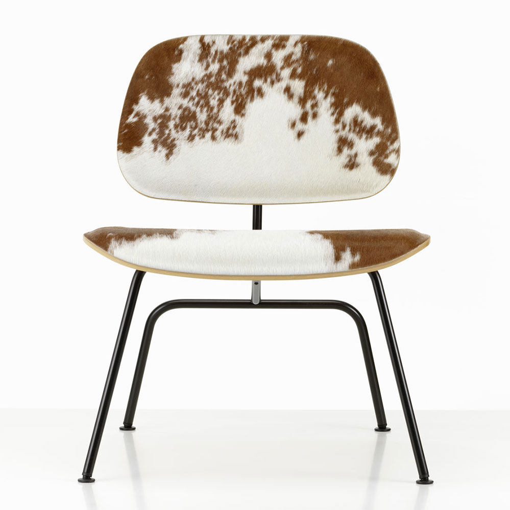 Die mit Kuhfell gepolsterten Varianten des Eames LCM Lounge Chair basieren auf historischen Vorlagen: Schon in den 1940er Jahren ergänzten die Eames ihre Stühle und Sessel der Plywood Group mit Varianten in Stoff, Fell oder Leder. Der LCM (Lounge Chair Metal) ist ein niedriger Sessel und gedacht als Solitär oder kleiner Clubsessel. Erhältlich sind die LCM Sessel mit Kuhfell in folgenden Varianten: