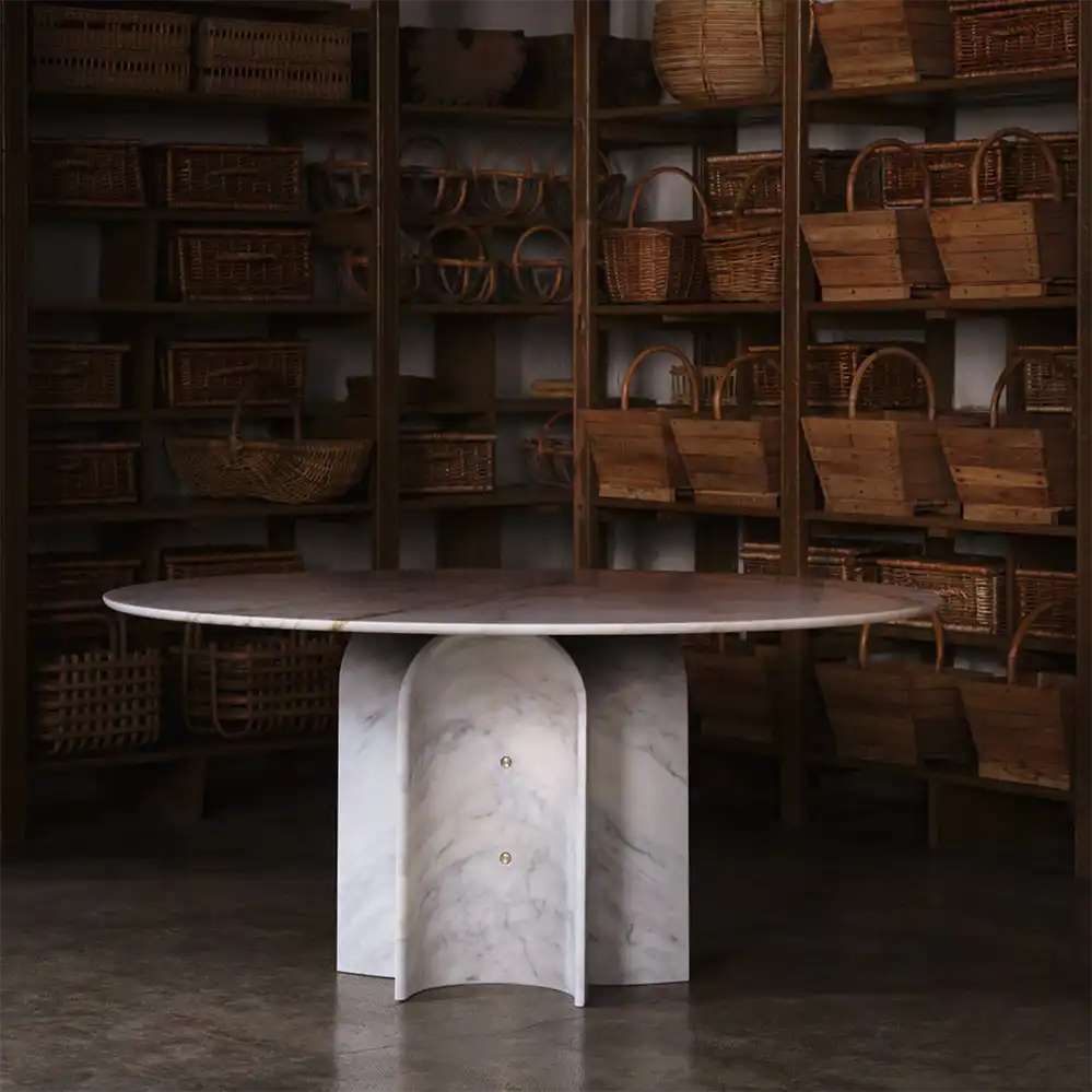 der elegante Marmortisch Le Cupole soll eine perfekte Synthese aus Material und Form sein. Der Entwurf von Francesco Meda und David Lopez Quincoces aus dem Jahr 2025 ist eine Hommage an geometrische Reinheit und skulpturale Eleganz.Das aus drei Marmorkuppeln (Cupole auf italienisch) bestehende Untergestell trägt die Tischplatte und schafft einen Dialog zwischen Stabilität und visueller Leichtigkeit.Die geschwungenen Oberflächen und die weichen Linien der Kuppeln verstärken das Gefühl von Symmetrie und Dynamik, während die raffinierten Details in den abgerundeten Formen und den Messingeinsätzen zum Vorschein kommen, die die Komposition bereichern.