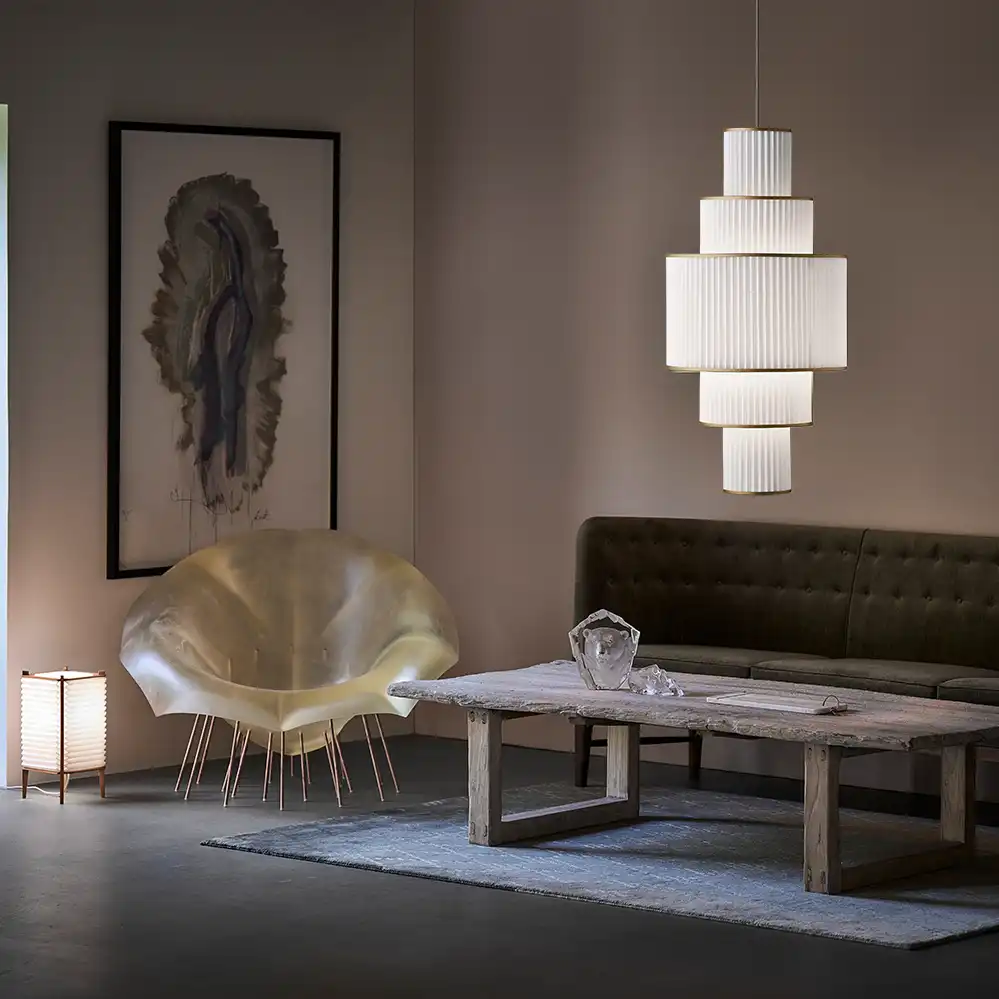 Plivello ist eine moderne Pendellampe mit Anklängen an klassische Formen. Designer Christian Troels ließ sich von mehrstufigen Kronleuchtern vergangener Jahrhunderte inspirieren und schuf eine Leuchte mit offener, detaillierter Struktur und komplexem Innenaufbau. Die Gestaltung lädt dazu ein, die Konstruktion auch von unten zu betrachten, wodurch Plivello aus jeder Perspektive wirkt. Die Serie ist in vier Größen erhältlich.