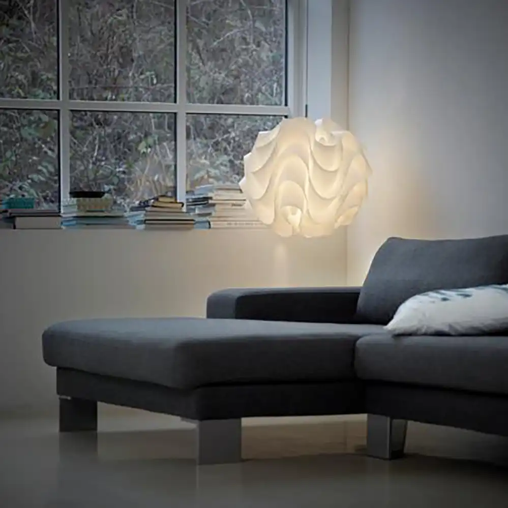 Die meisten Leuchtenmodelle von Le Klint sind mit einem faltbaren Papier- oder Kunststoffschirm erhältlich. Der handgefaltete Papierschirm erzeugt ein warmes Licht, hat eine lange Lebensdauer und wird im Laufe der Jahre eine schöne goldene Patina entwickeln. Der Kunststoffschirm hat ebenso eine lange Haltbarkeit, sorgt für eine gleichmäßigere Lichtdurchlässigkeit und ist leichter zu reinigen. Die von Le Klint verwendete Folie ist UV-beständig, antistatisch und behält die weiße Farbe über viele Jahre hinweg bei.