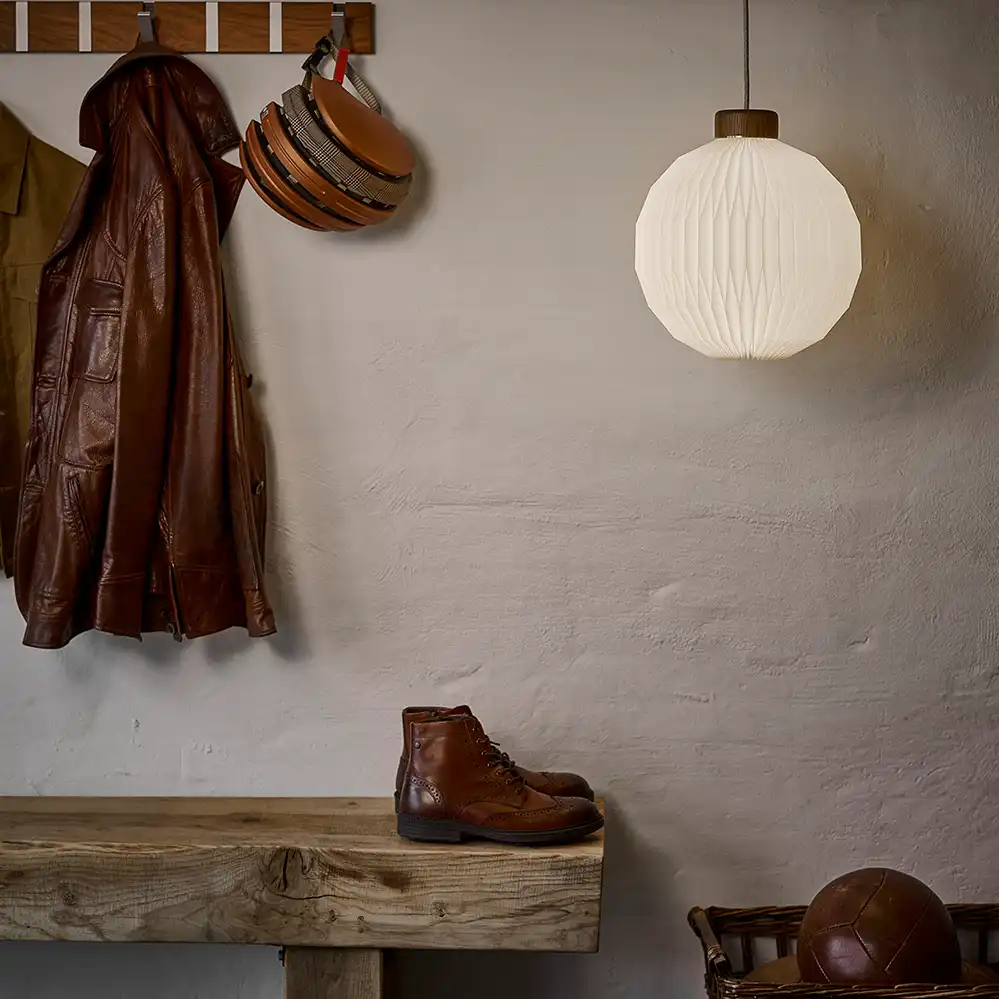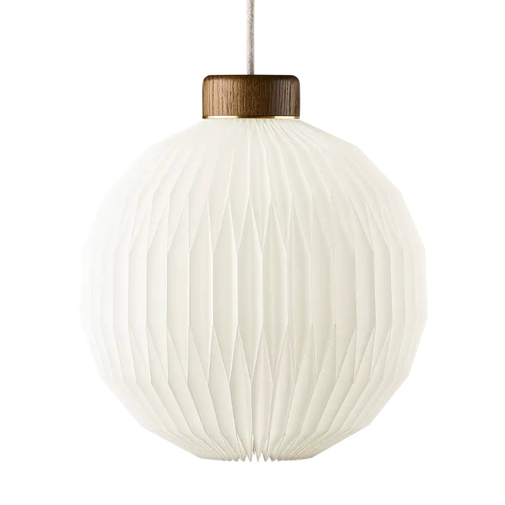 Die meisten Leuchtenmodelle von Le Klint sind mit einem faltbaren Papier- oder Kunststoffschirm erhältlich. Der handgefaltete Papierschirm erzeugt ein warmes Licht, hat eine lange Lebensdauer und wird im Laufe der Jahre eine schöne goldene Patina entwickeln. Der Kunststoffschirm hat ebenso eine lange Haltbarkeit, sorgt für eine gleichmäßigere Lichtdurchlässigkeit und ist leichter zu reinigen. Die von Le Klint verwendete Folie ist UV-beständig, antistatisch und behält die weiße Farbe über viele Jahre hinweg bei.