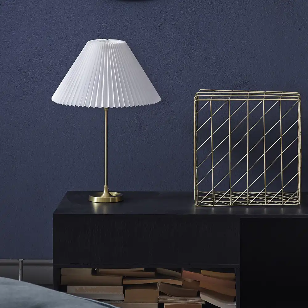 Die Tischleuchte Modell 307 mit ihrem Messingfuß und gefalteten Schirm entwarf Esben Klint, der Sohn von Kaare Klint, im Jahr 1948.