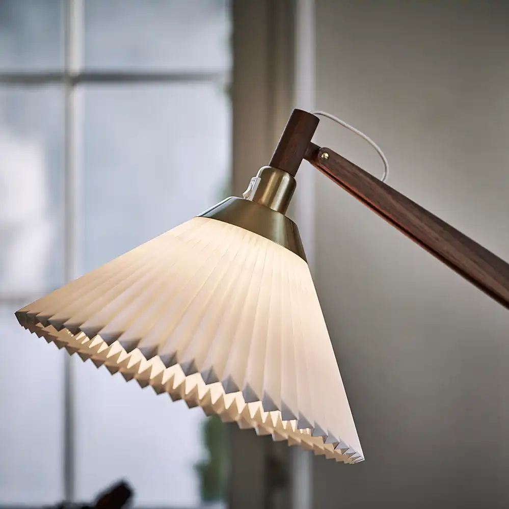 Die meisten Leuchtenmodelle von Le Klint sind mit einem faltbaren Papier- oder Kunststoffschirm erhältlich. Der handgefaltete Papierschirm erzeugt ein warmes Licht, hat eine lange Lebensdauer und wird im Laufe der Jahre eine schöne goldene Patina entwickeln. Der Kunststoffschirm hat ebenso eine lange Haltbarkeit, sorgt für eine gleichmäßigere Lichtdurchlässigkeit und ist leichter zu reinigen. Die von Le Klint verwendete Folie ist UV-beständig, antistatisch und behält die weiße Farbe über viele Jahre hinweg bei.