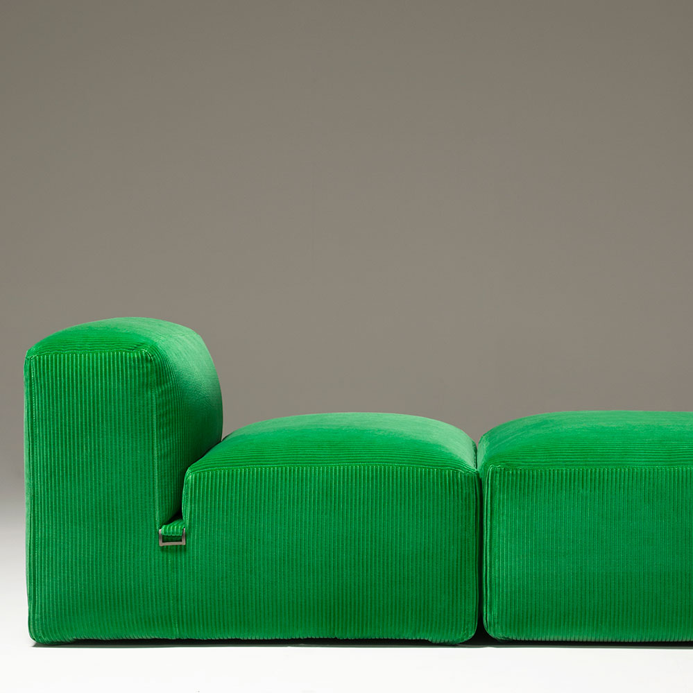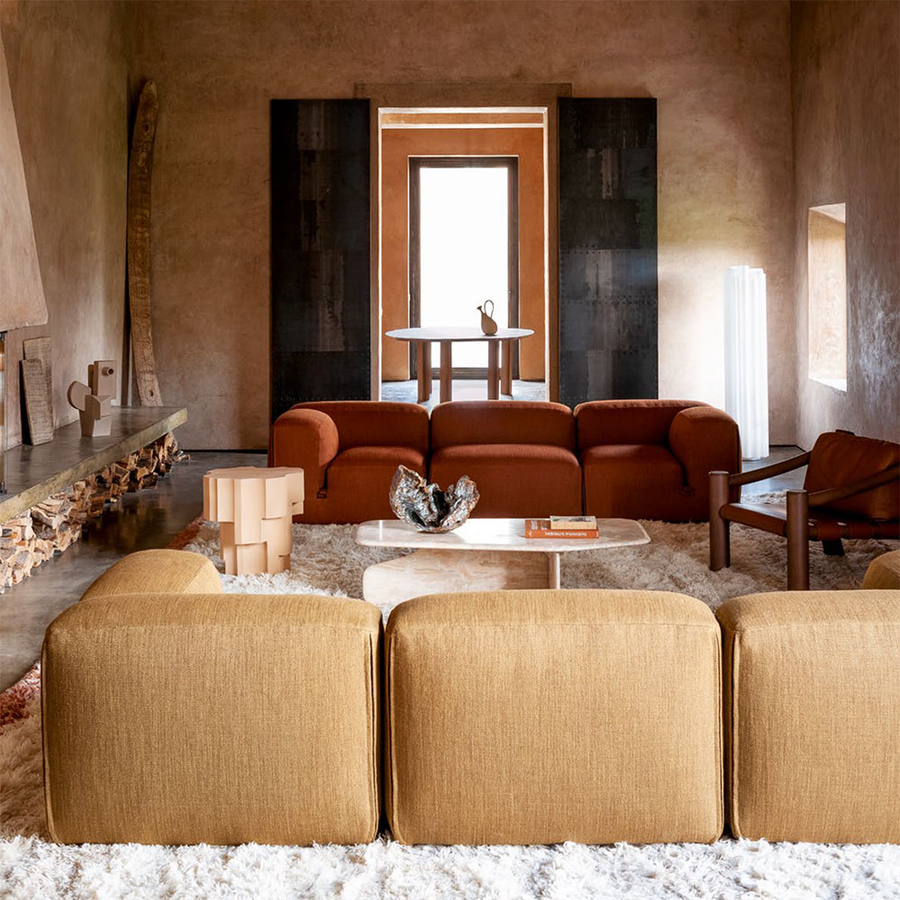 1972 entwarf Mario Bellini für Cassina die Sitzlandschaft Le Mura, 2022 erfolgte eine neue Edition durch Tacchini. Das Sofa besteht aus insgesamt sieben verschiedenen Modulen, die miteinander kombiniert werden können und so ganze Sitzlandschaften erzeugen. Verbunden werden die einzelnen Module mittels Gurten. Markanto bietet das Sofa exemplarisch mit zwei Modulen wie auf der ersten Abbildung an, bitte awitere Varianten gerne anfragen (odder andere Stoff- und Lederqualitäten). Seit 2025 ist das Le Mura Sofa bei Tacchini in der noch größeren XL-Version erhältlich, gerne auch auf Anfrage.