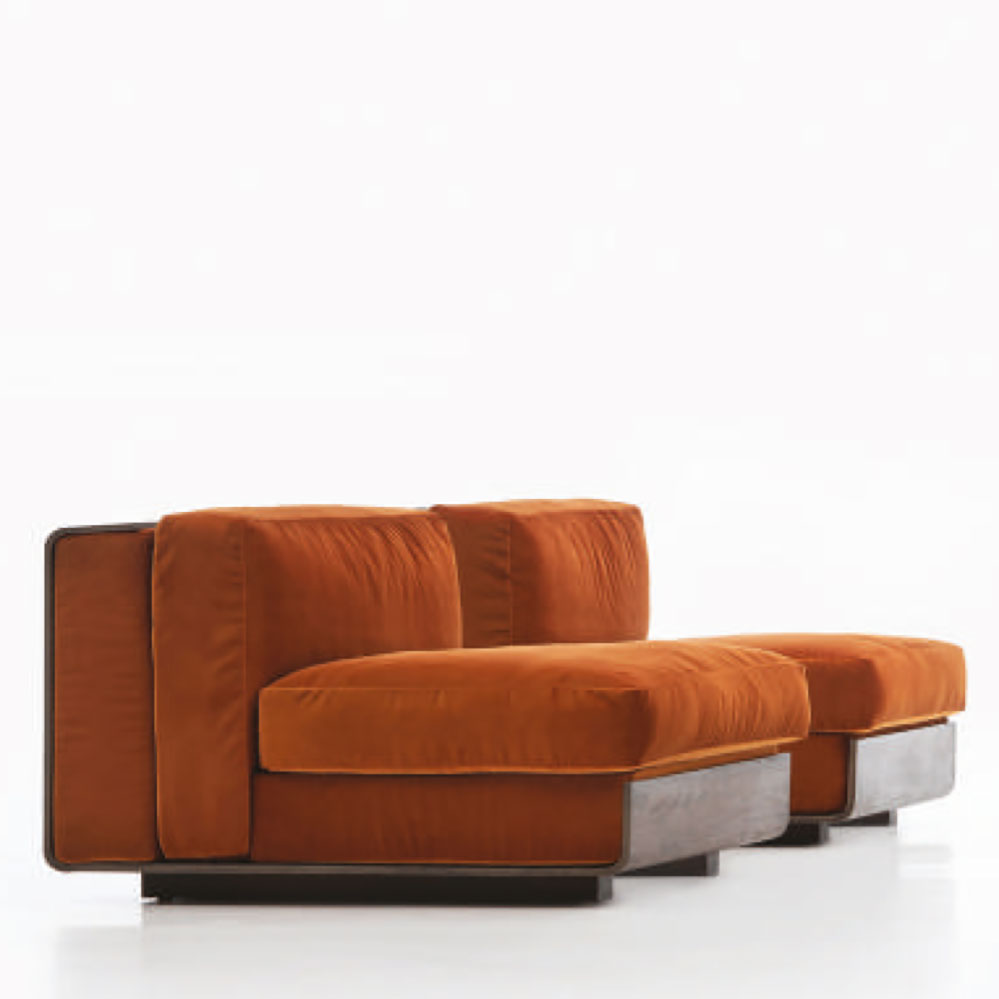 Das modulare Sitzsystem mit weicher Sitzfläche ist ein Entwurf des italienischen Architekten Roberto Monsani aus dem Jahr 1975 und entstand ursprünglich mit einer Sitzschale aus Acrylglas, einem damals recht avantgardistischen Material. Das Einzelelement kann wahlweise als Sessel verwendet werden oder endlos als Sofa verlängert werden. Formschön ist das Sitzsystem auch von hinten durch den Birkeholzkorpus in Esche oder Nussbaum. Neben dem angebotenen Samtstoff Opera ist Life bei Acerbis auf Anfrage noch in zahleichen weiteren Stoffen möglich.
