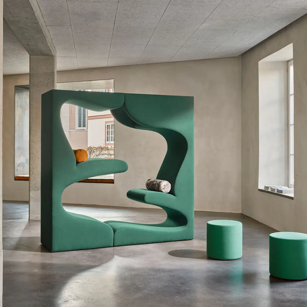 Das multifunktionale Sitzmöbel aus dem Jahr 1969 ist einer der besonders interessanten Beiträge, die Verner Panton unter dem Motto Mehr Komfort, mehr Erlebnis, mehr Farbe leistete und ist der Ausgereifteste unter den zahlreichen experimentellen Möbelentwürfen. Diese zweiteilige Möbelskulptur nutzt konsequent die Dreidimensionalität des Raumes, ist organisch geformt und lässt sich auf vier Ebenen nutzen, wodurch er sich als sehr kommunikationsfördernd erweist. Zudem ist der Living Tower außerordentlich bequem.