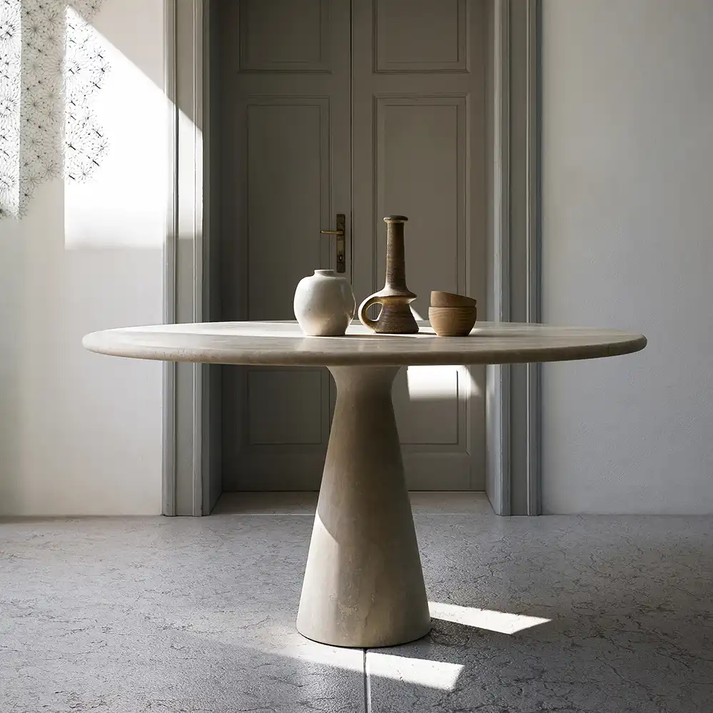 Der sogenannte M Esstisch basiert auf Angelo Mangiarottis Frühwerk aus dem Jahr 1959 - dem SK207 mit dem Bronzefuß. Im Gegensatz dazu hat der ähnlich geformte M Esstisch aus dem Jahr 1969 einen Fuß aus Marmor. Markanto bietet die Mangiarotti Tische in ausgewählten Marmorarten an (weitere Marmorarten oder Travertinstein gerne auf Anfrage):