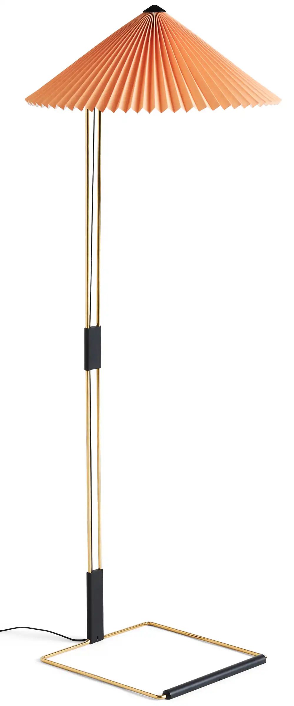 Die Matin Stehleuchte kombiniert zeitgenössisches Design mit einer poetischen Ausstrahlung. Ihre Konstruktion vereint visuelle Leichtigkeit mit stabiler Robustheit. Das flach verpackte Design besteht aus einem schlanken Stahlrahmen in poliertem Messing, ergänzt durch matte schwarze Beschläge und Zinklegierungs-Gelenke am Sockel. Der plissierte Baumwollschirm ist in einer Auswahl sorgfältig abgestimmter Farben erhältlich und verleiht der Leuchte einen eleganten Charakter. Die Lichtquelle ist ein integriertes LED-Modul, das ein sanftes, diffuses Licht erzeugt. Über einen digitalen Inline-Dimmer am Bodenschalter lässt sich die Lichtintensität individuell regulieren.