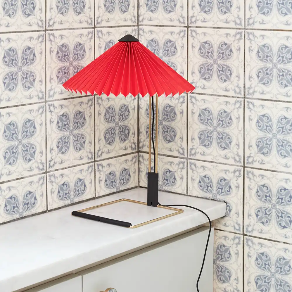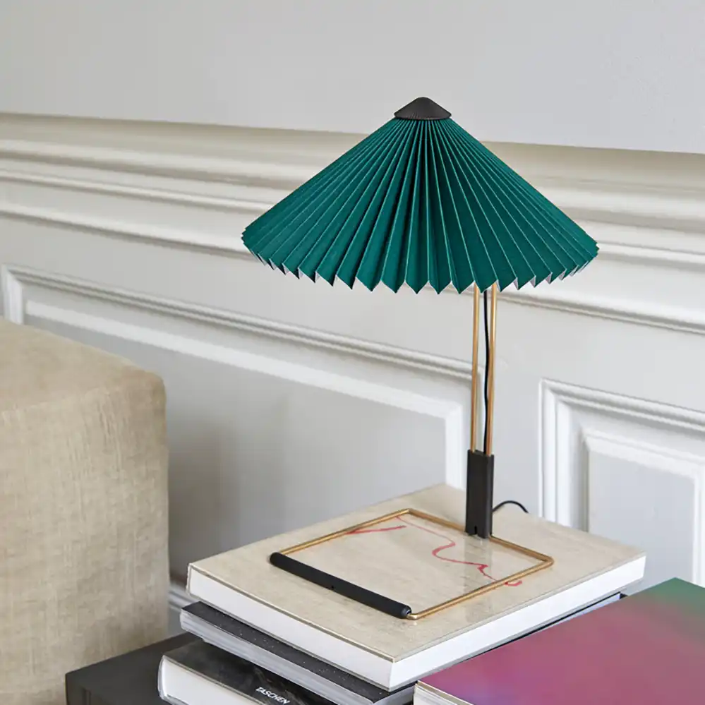 Die kleine Matin Tischleuchte vereint zeitgenössisches Design mit einer poetischen Note. Ihr filigraner, aus gebogenem Stahl gefertigte Rahmen ist in poliertem Messing ausgeführt und wird durch matte schwarze Beschläge ergänzt. Die Leuchte ist mit einem plissierten Baumwollschirm in verschiedenen lebendigen Farben erhältlich, der für einen eleganten und zugleich modernen Look sorgt. Als Lichtquelle dient ein integriertes LED-Modul, das ein sanftes, nach unten gerichtetes Licht abstrahlt. Die Helligkeit lässt sich über einen digitalen Inline-Dimmer individuell anpassen.